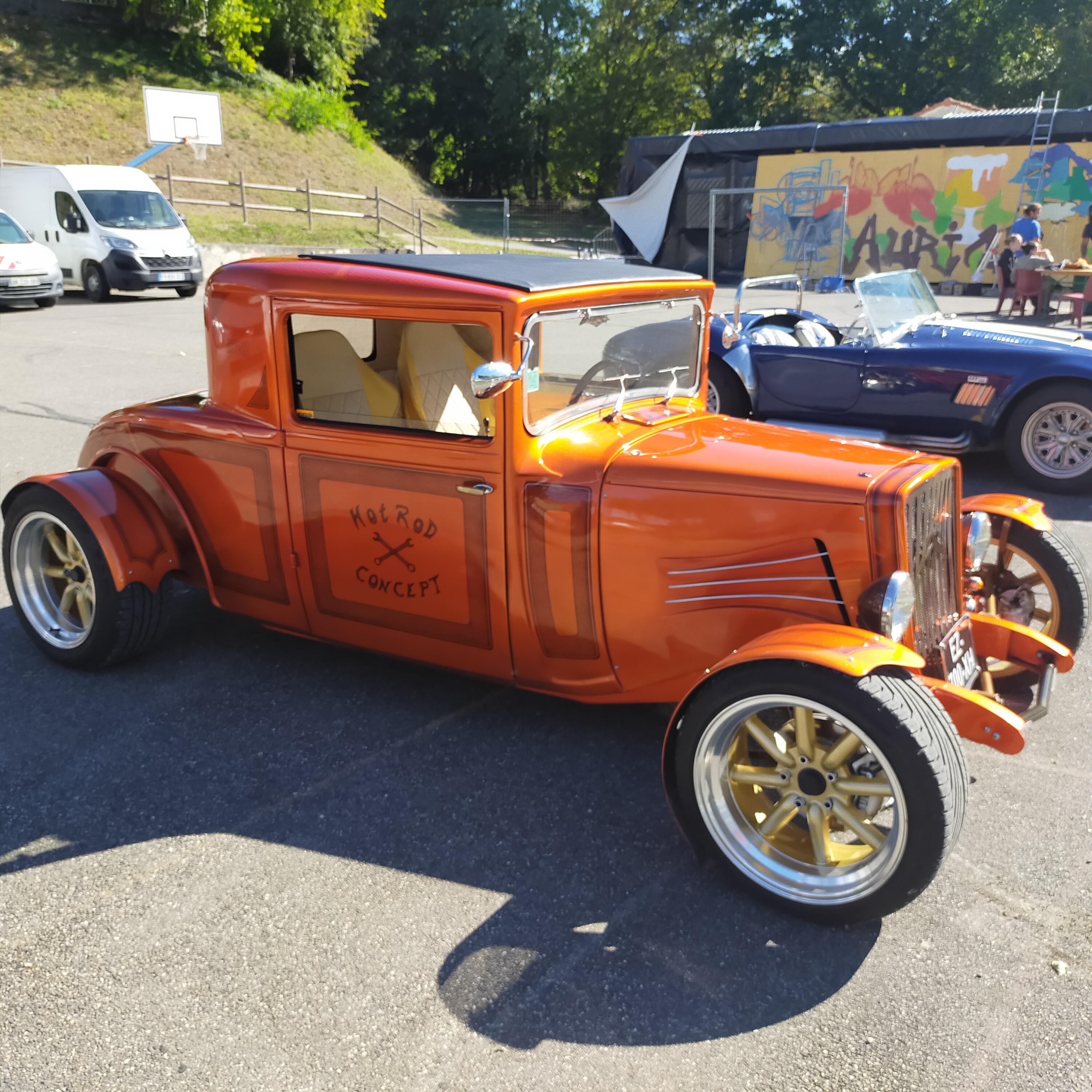 Fete de la biere pression avec expo, voitures, moto et groupe de rock'n'roll, superbe