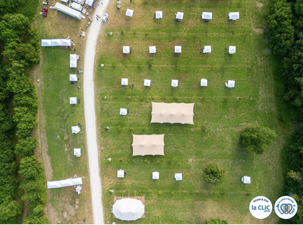 On a réservé 8 tables de 1000 et on a été super bien reçu. Une expérience unique de tente poreuse qui laisse passer l'eau mais jamais l'air. Incroyable. A faire au moins une fois dans sa vie si on aime prendre des risques. Toilettes et douches de luxe. Vue imprenable sur l'amitié et la solidarité 💕