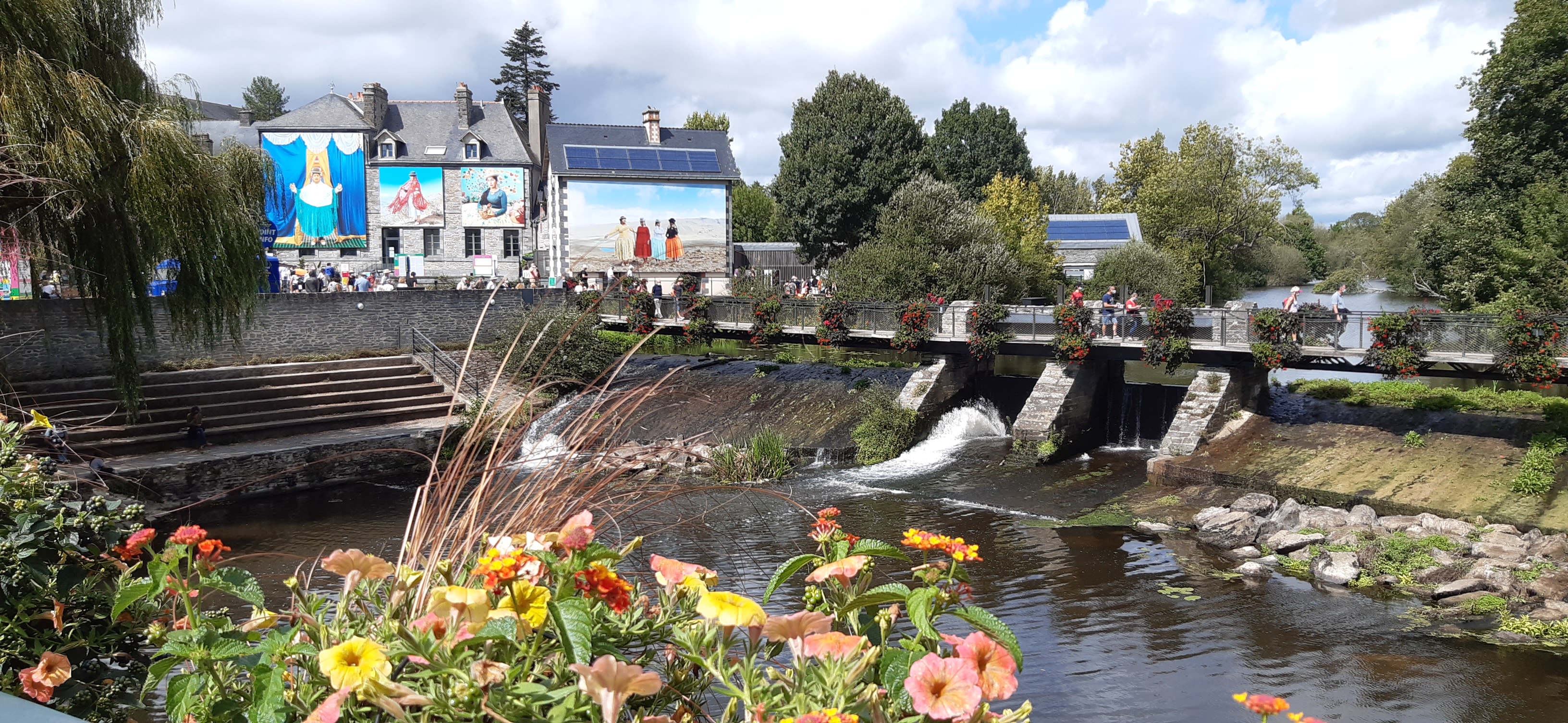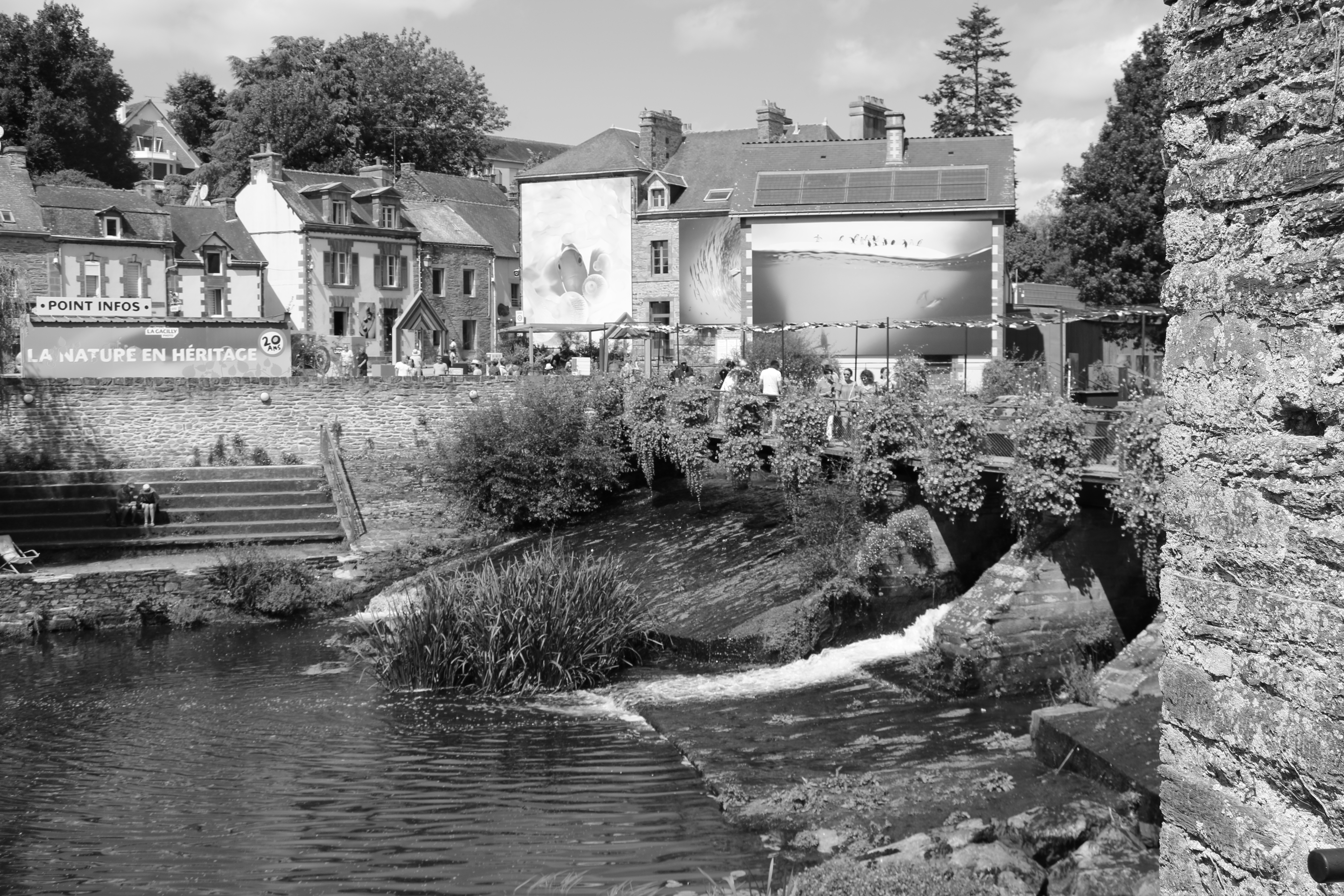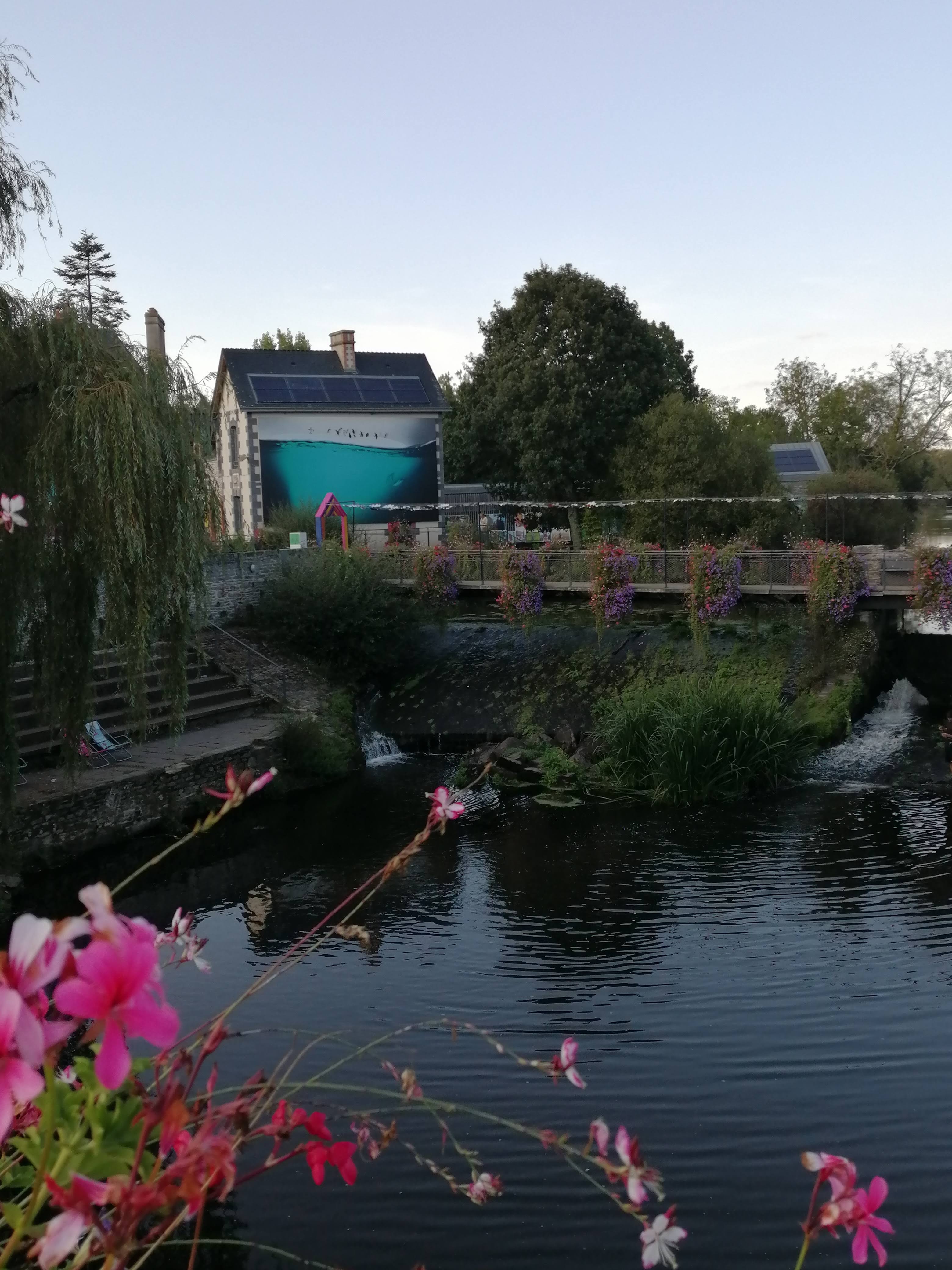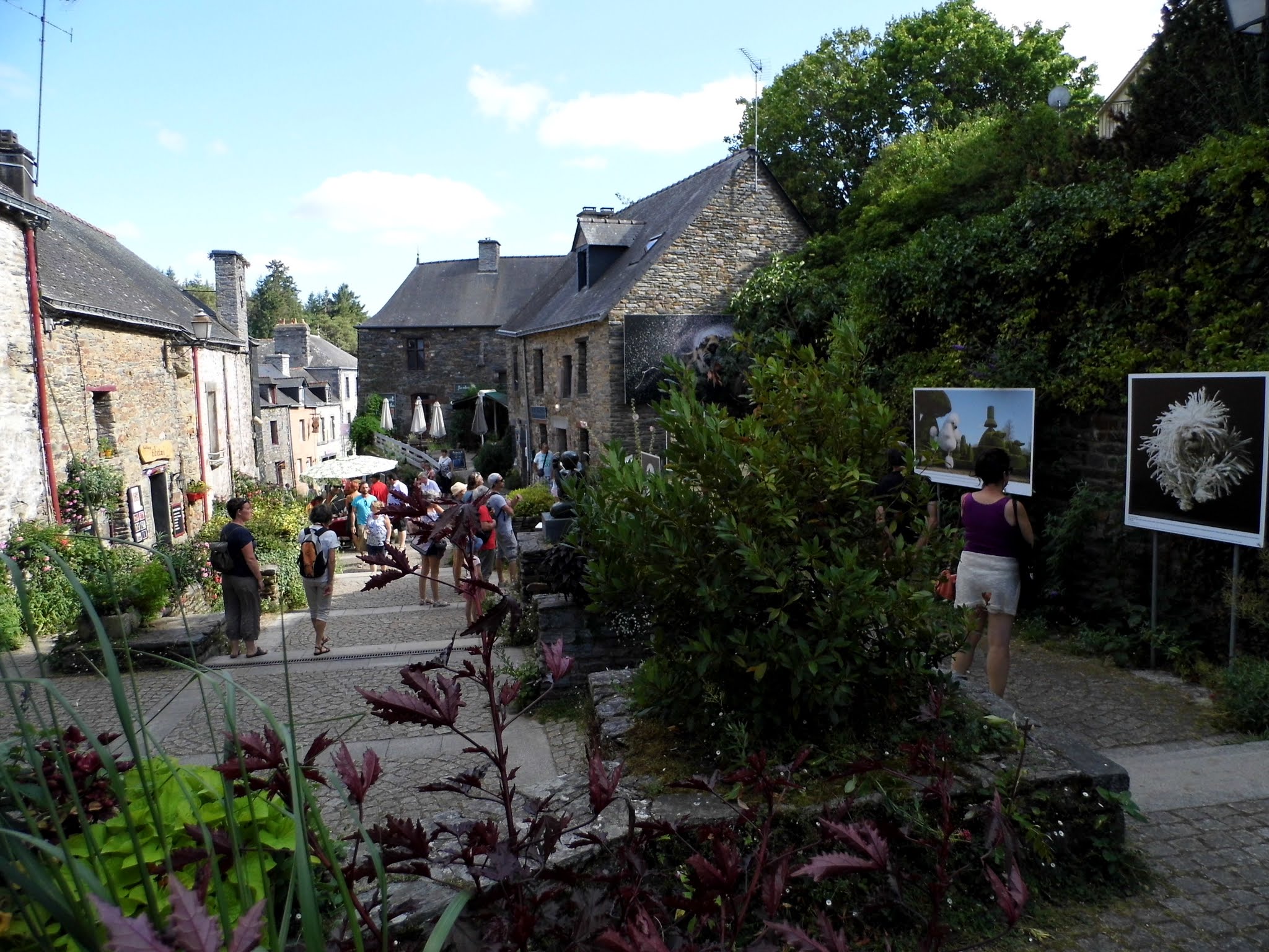 L'exposition photo invite à la découverte d'un très beau village plein de charme, avec son pont qui mène au centre Yves Rocher, qui à sû améliorer ses abords d'année en année.