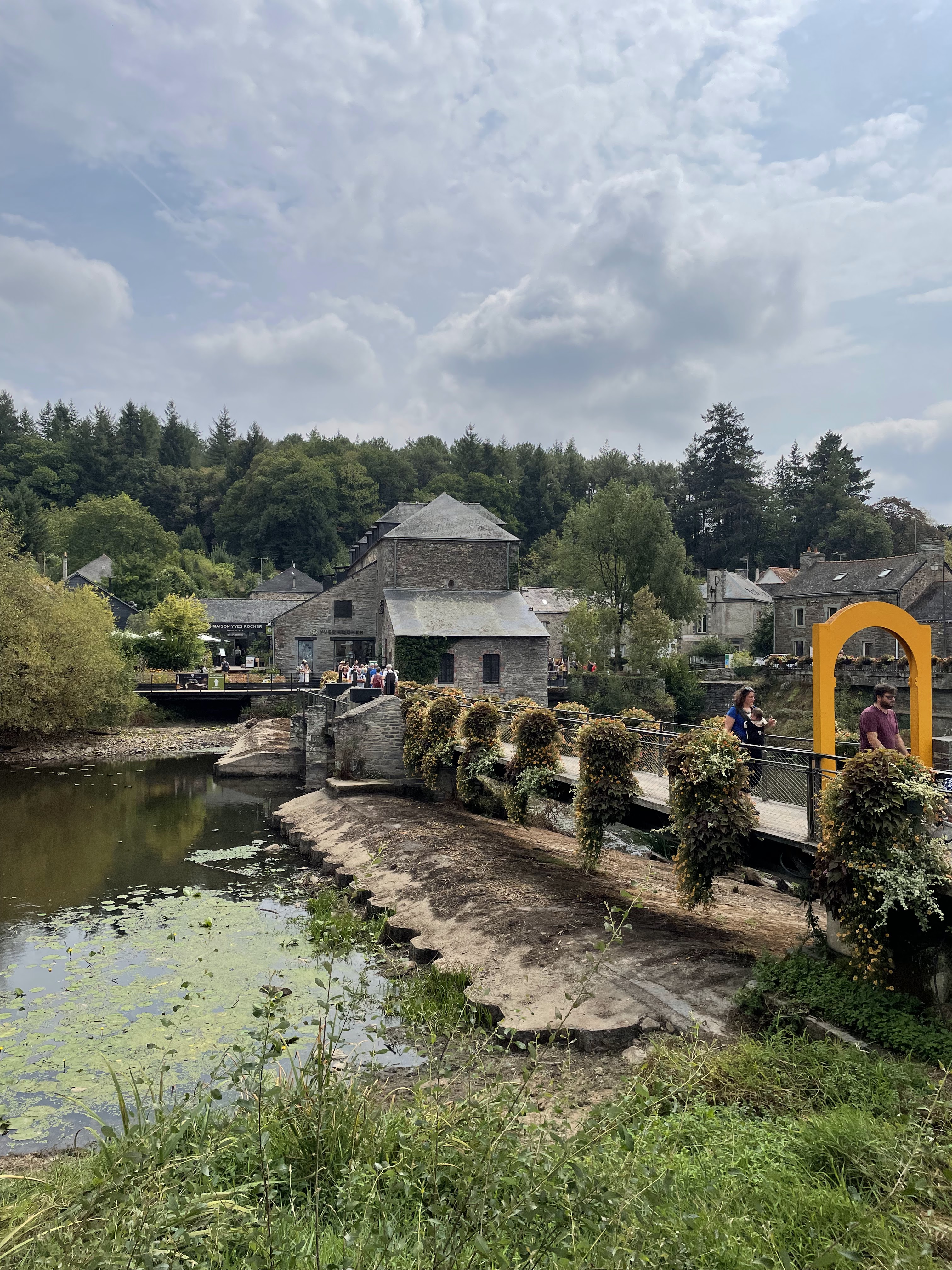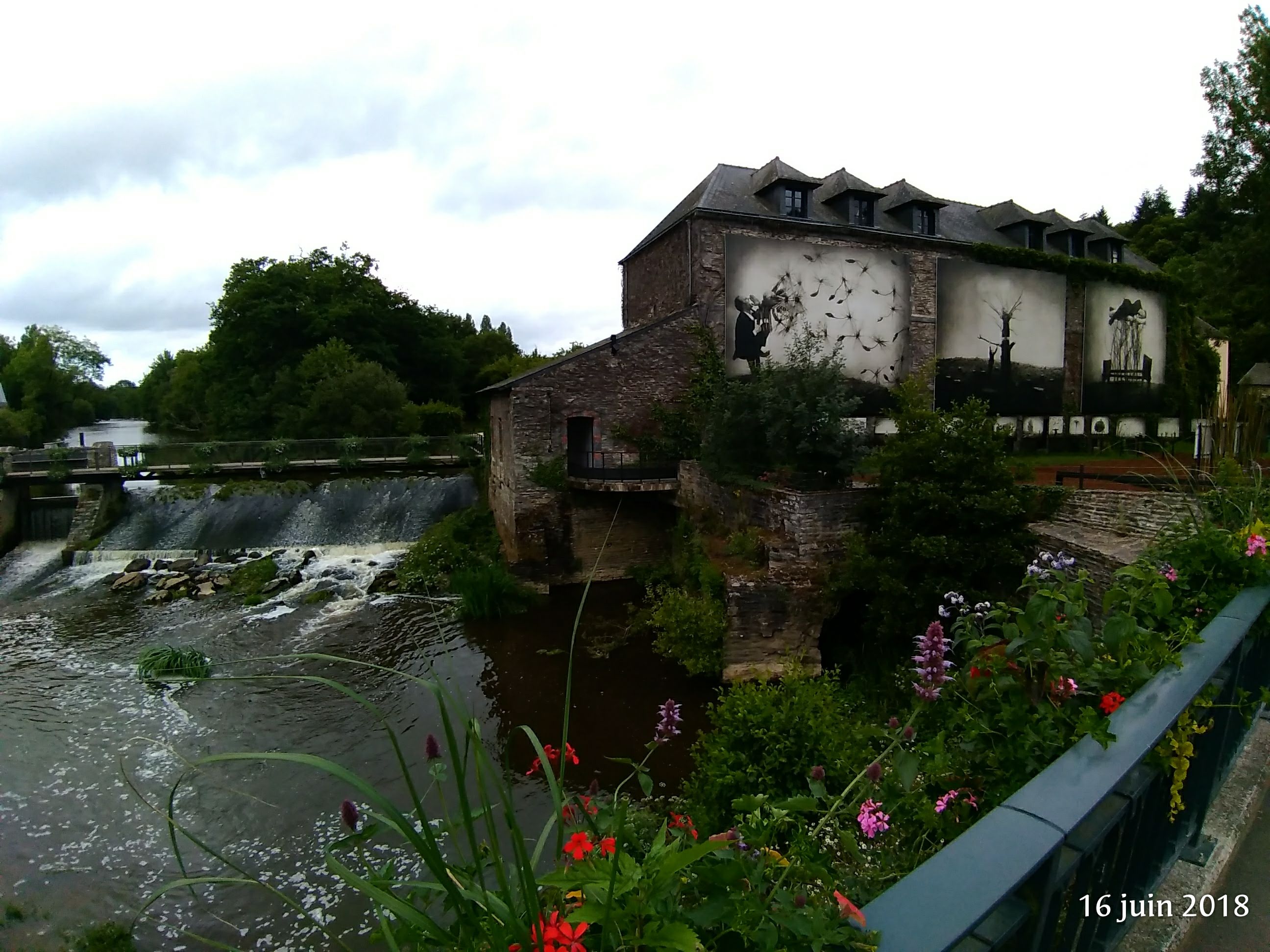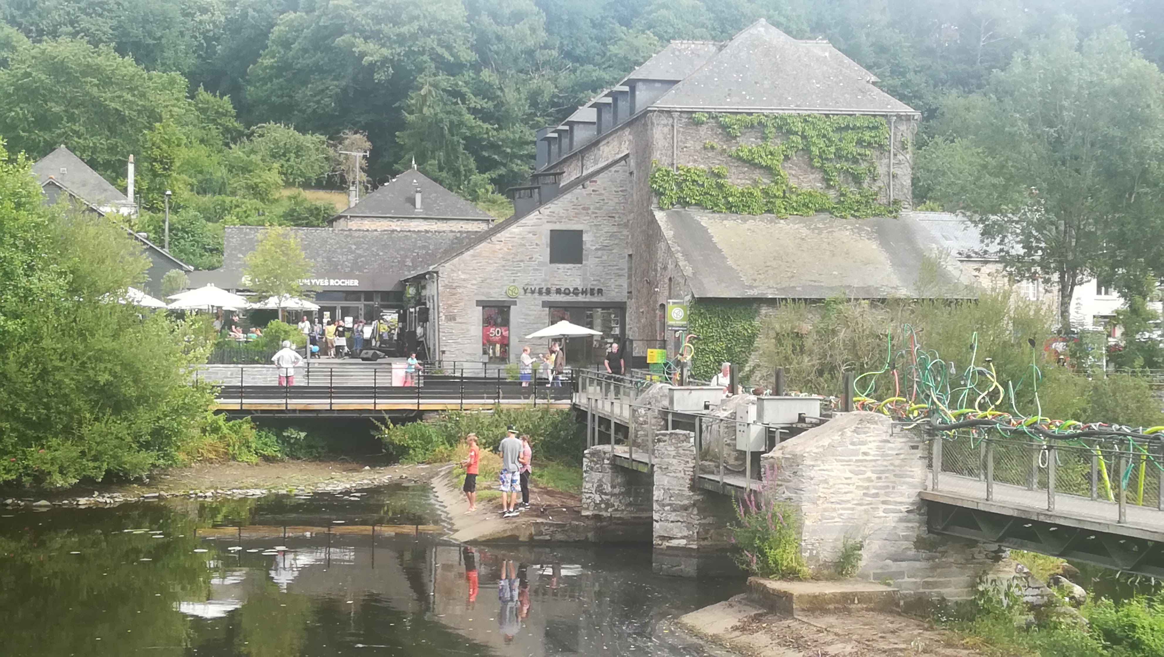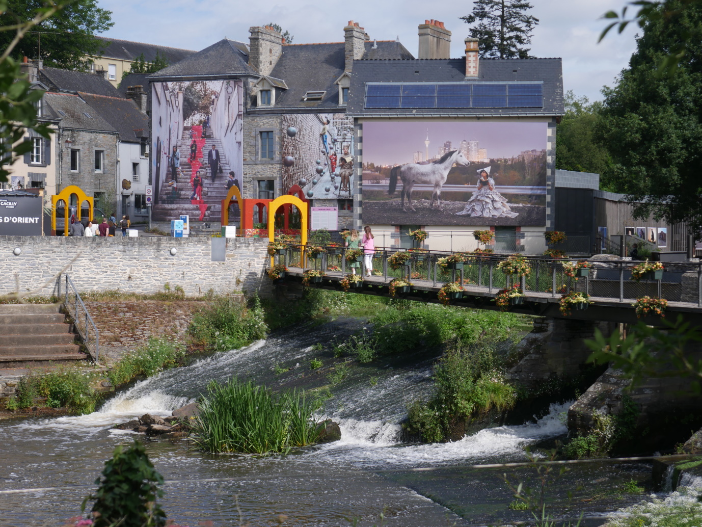 L'exposition photo invite à la découverte d'un très beau village plein de charme, avec son pont qui mène au centre Yves Rocher, qui à sû améliorer ses abords d'année en année.