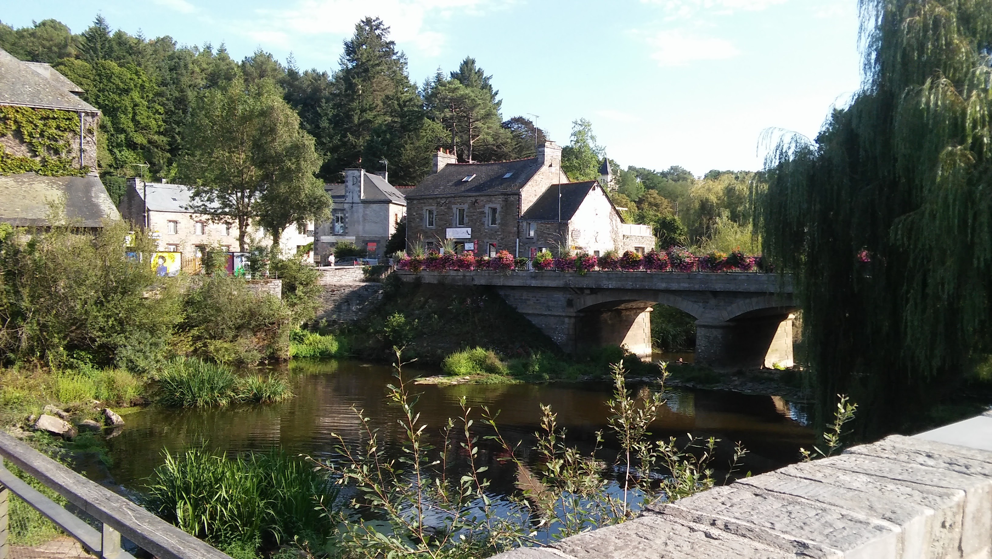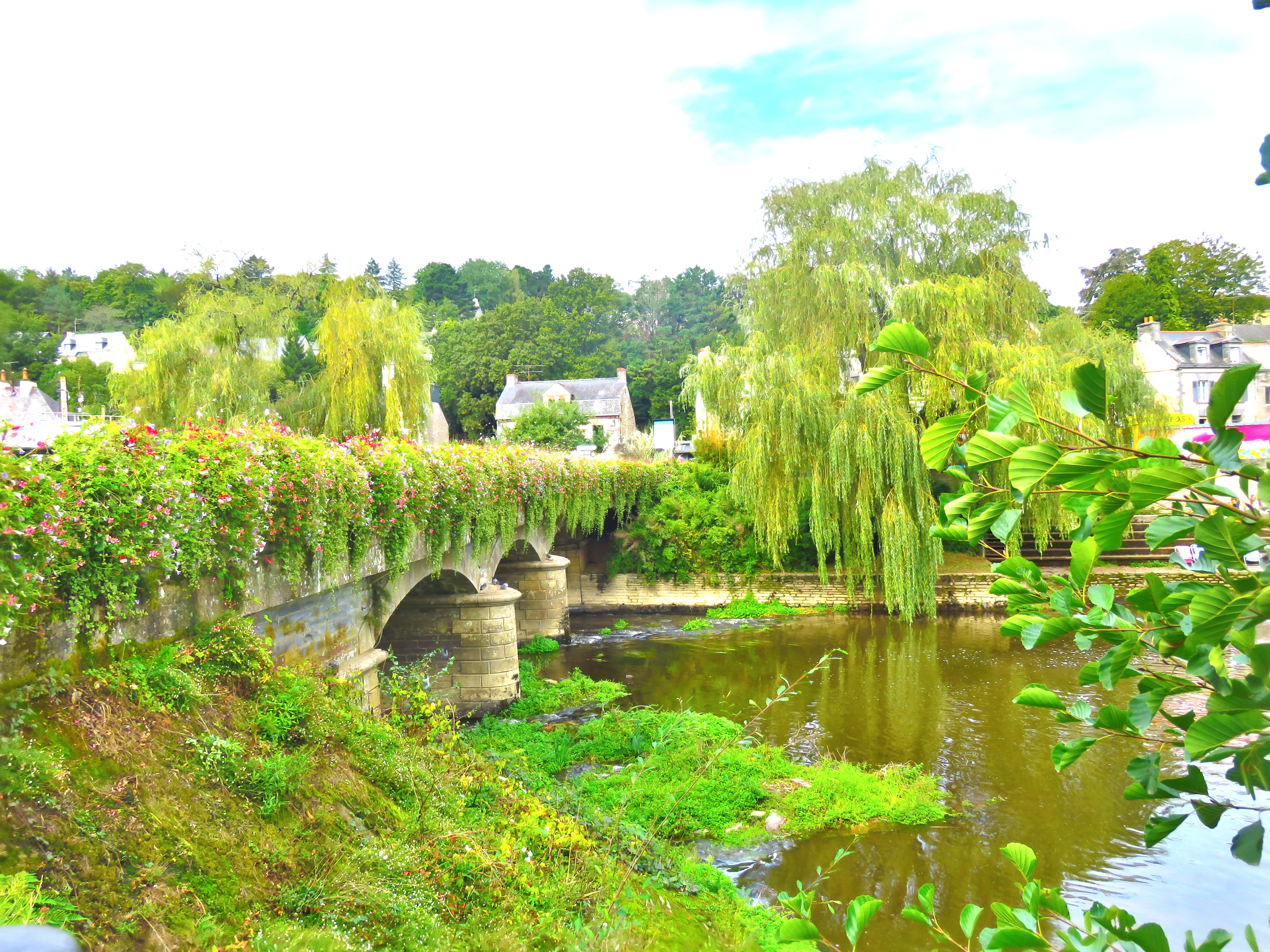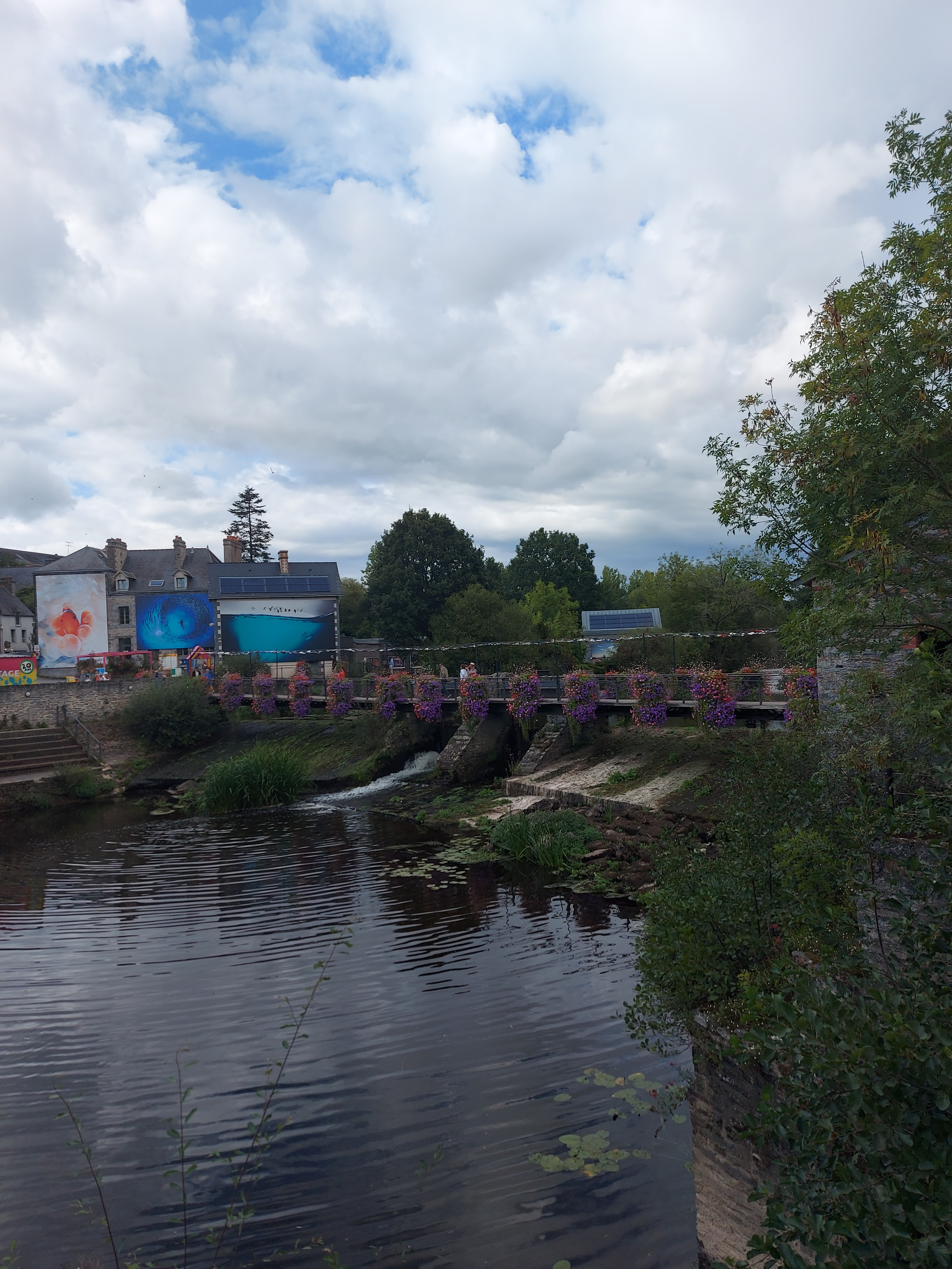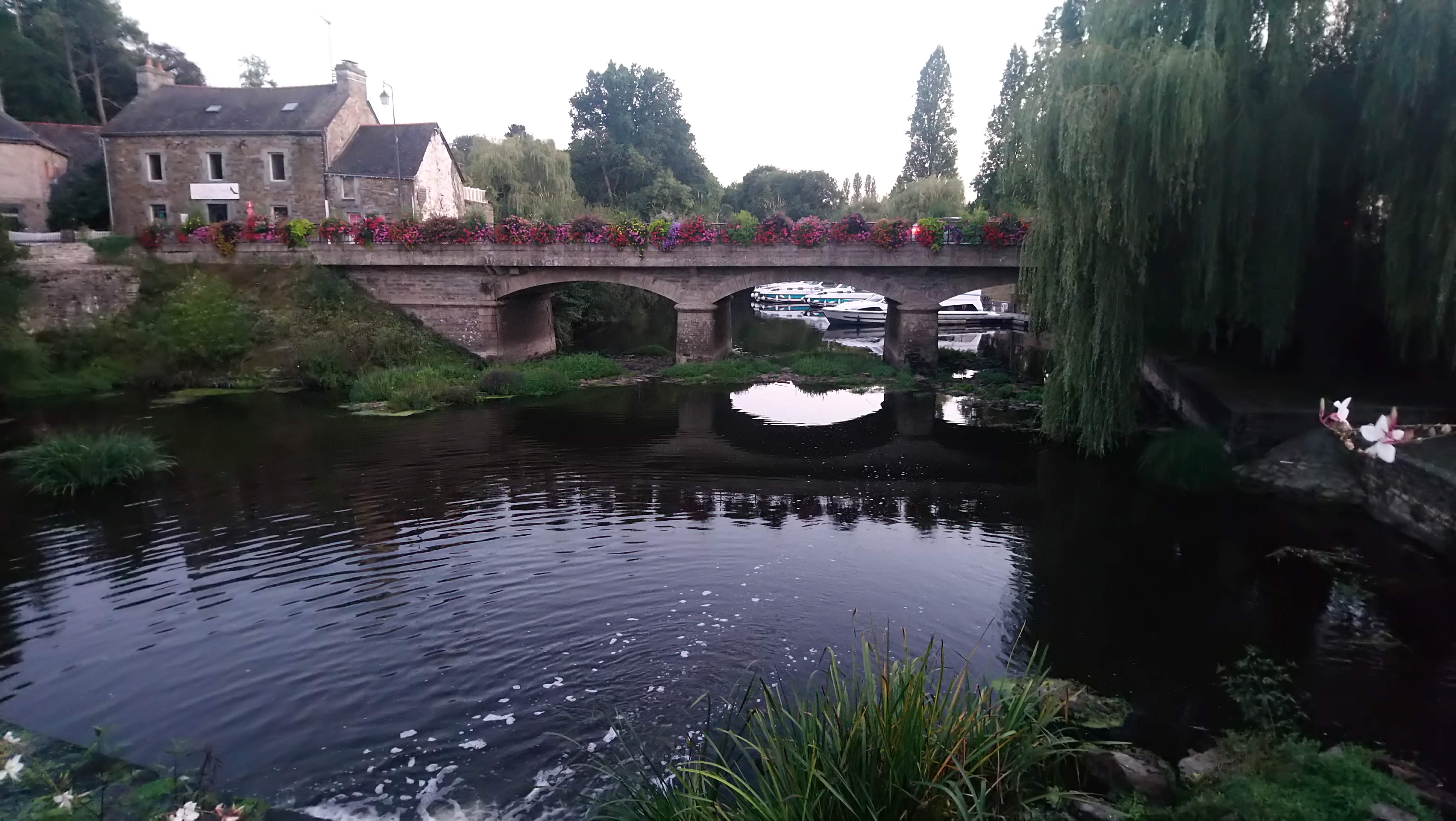 L'exposition photo invite à la découverte d'un très beau village plein de charme, avec son pont qui mène au centre Yves Rocher, qui à sû améliorer ses abords d'année en année.