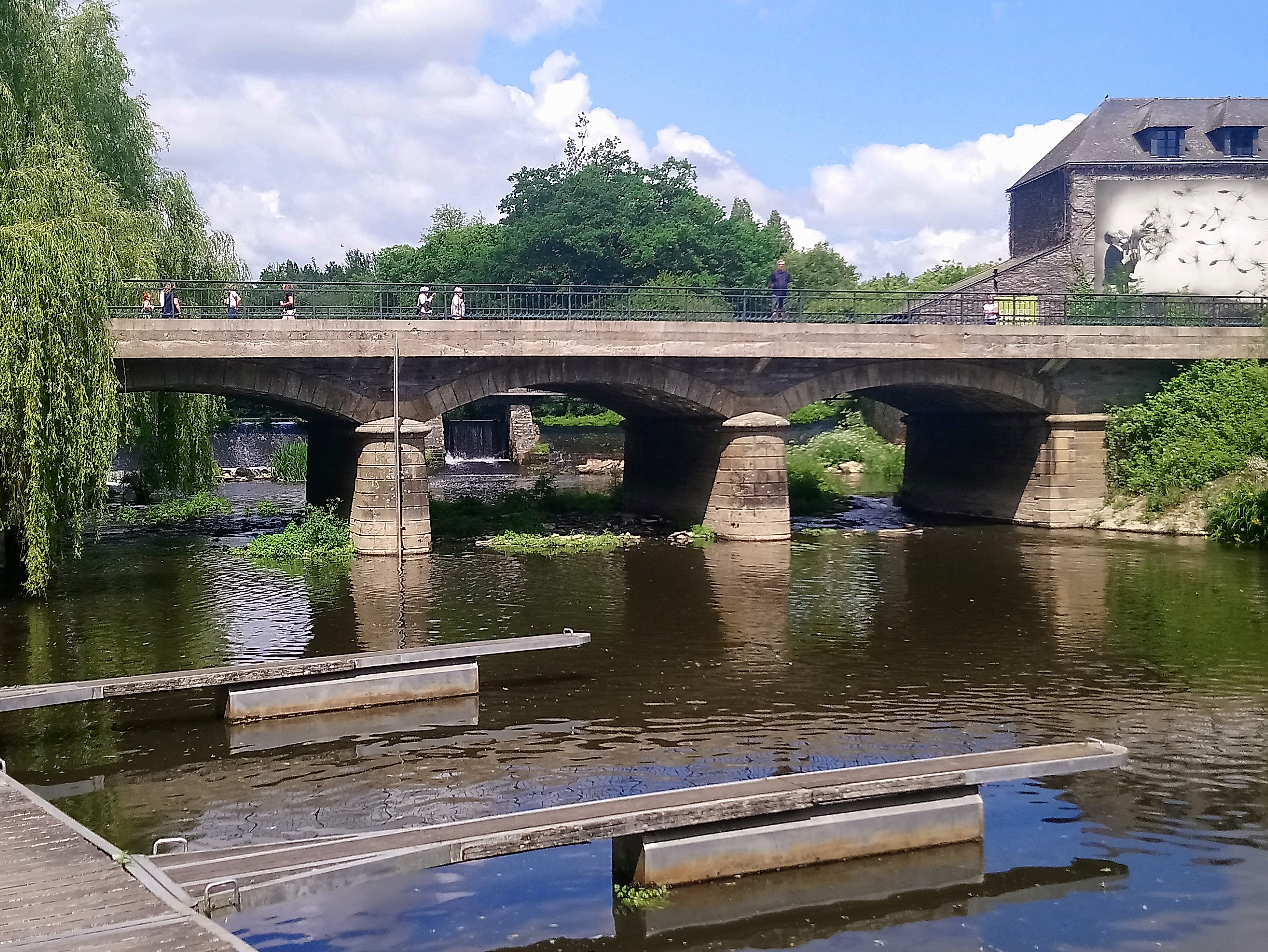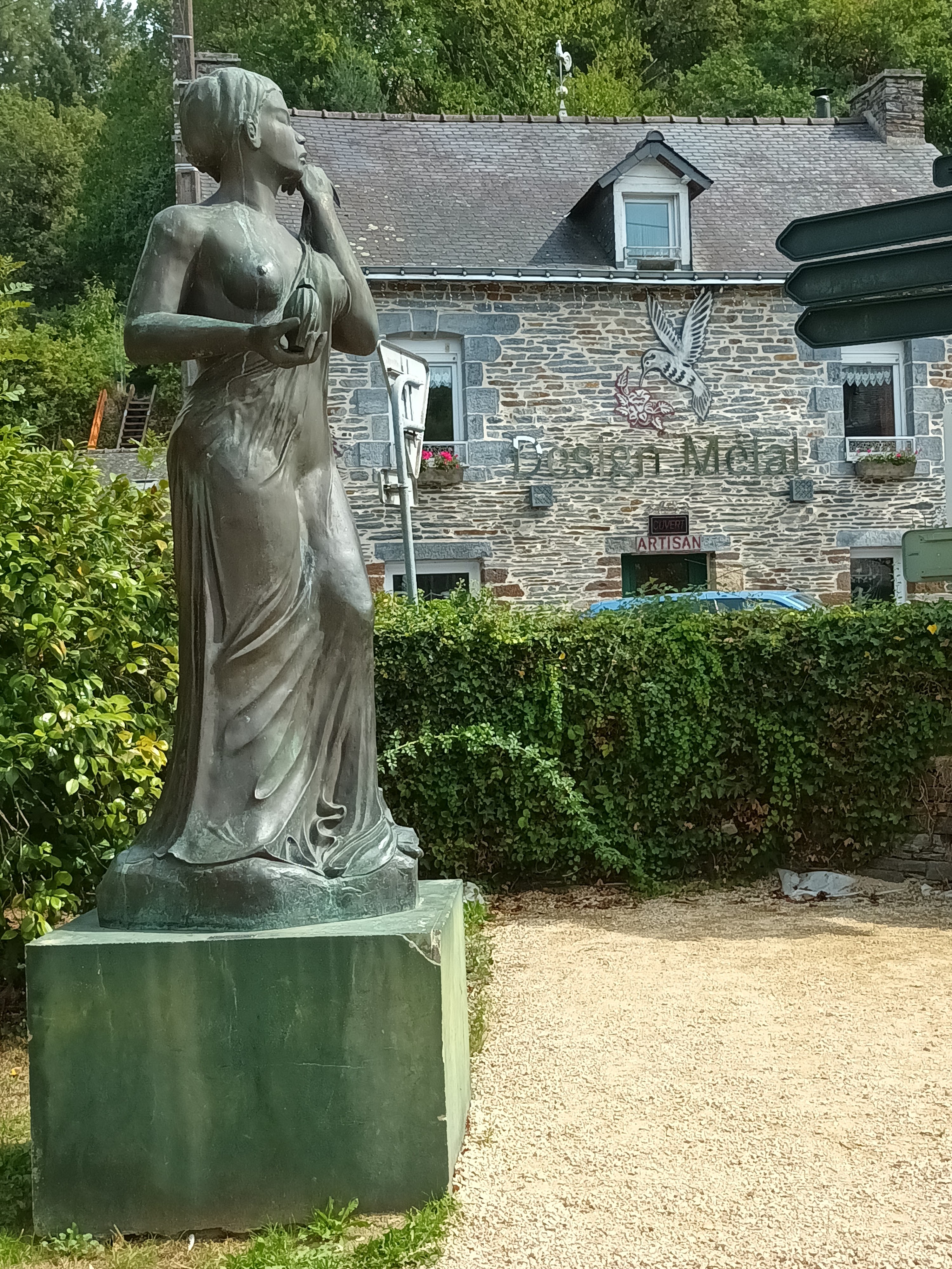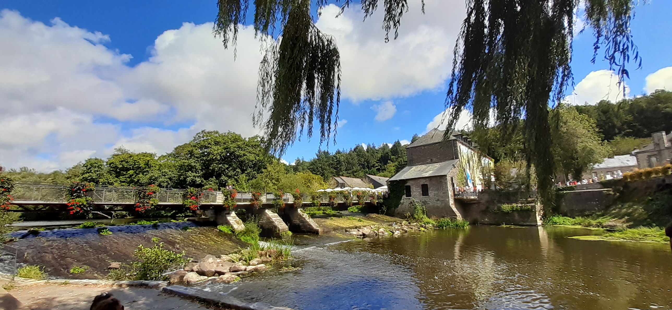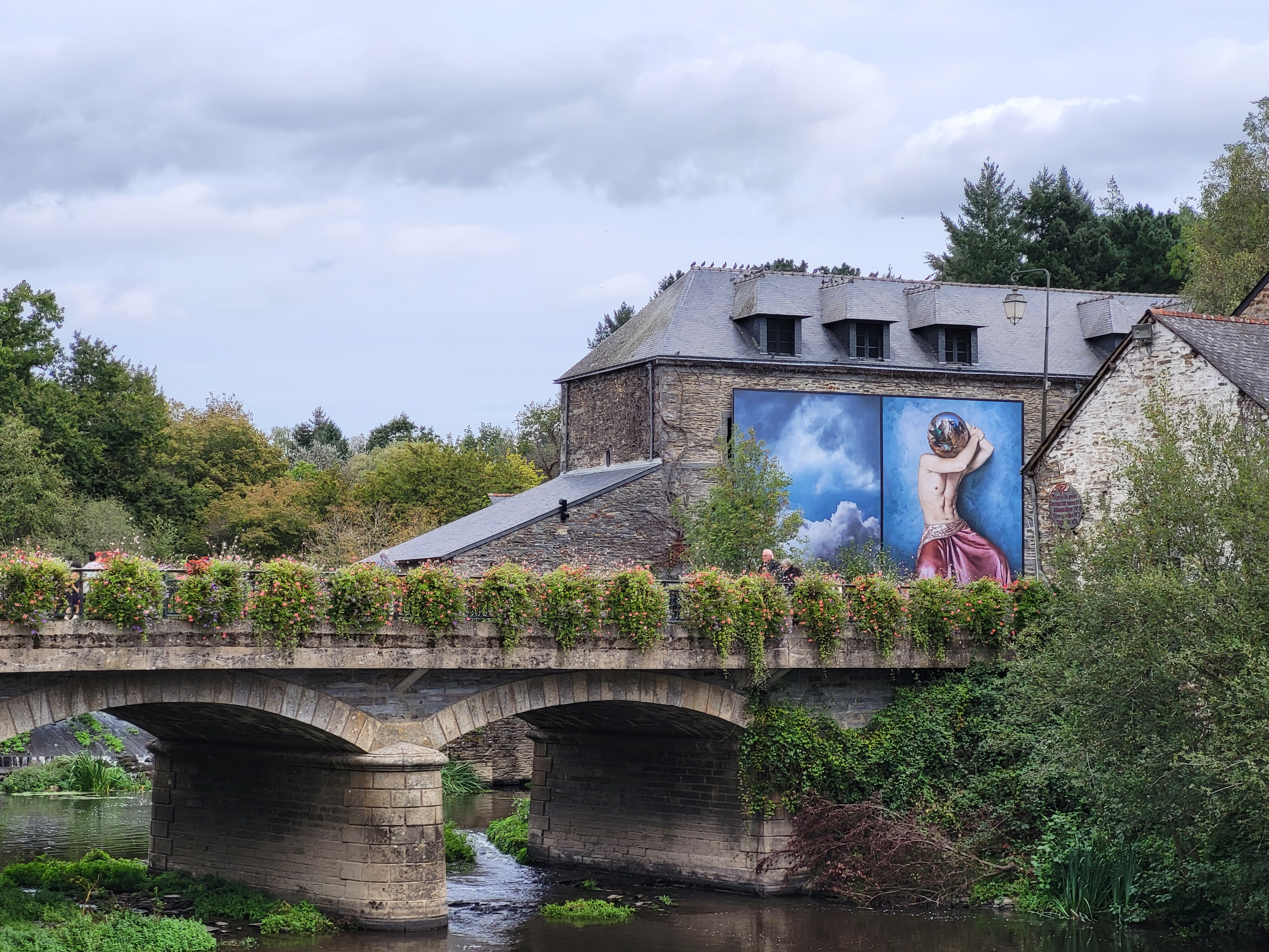 L'exposition photo invite à la découverte d'un très beau village plein de charme, avec son pont qui mène au centre Yves Rocher, qui à sû améliorer ses abords d'année en année.