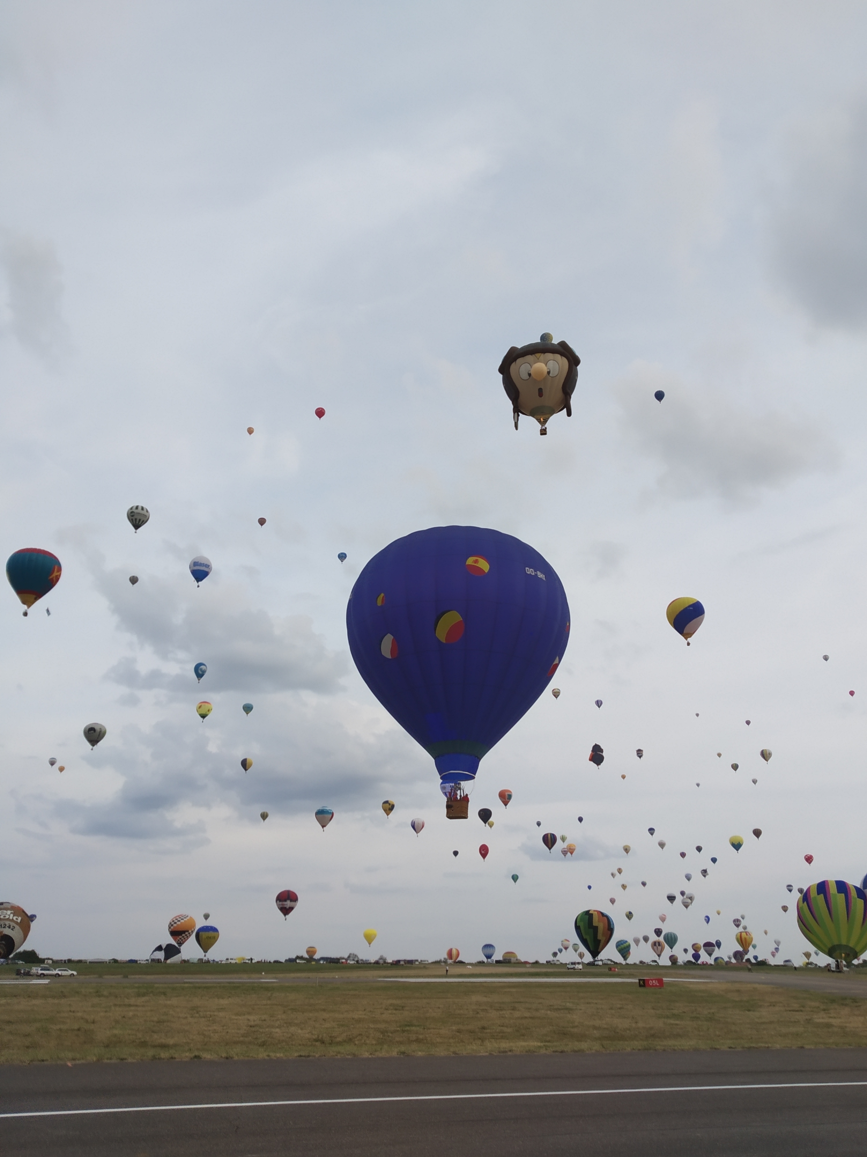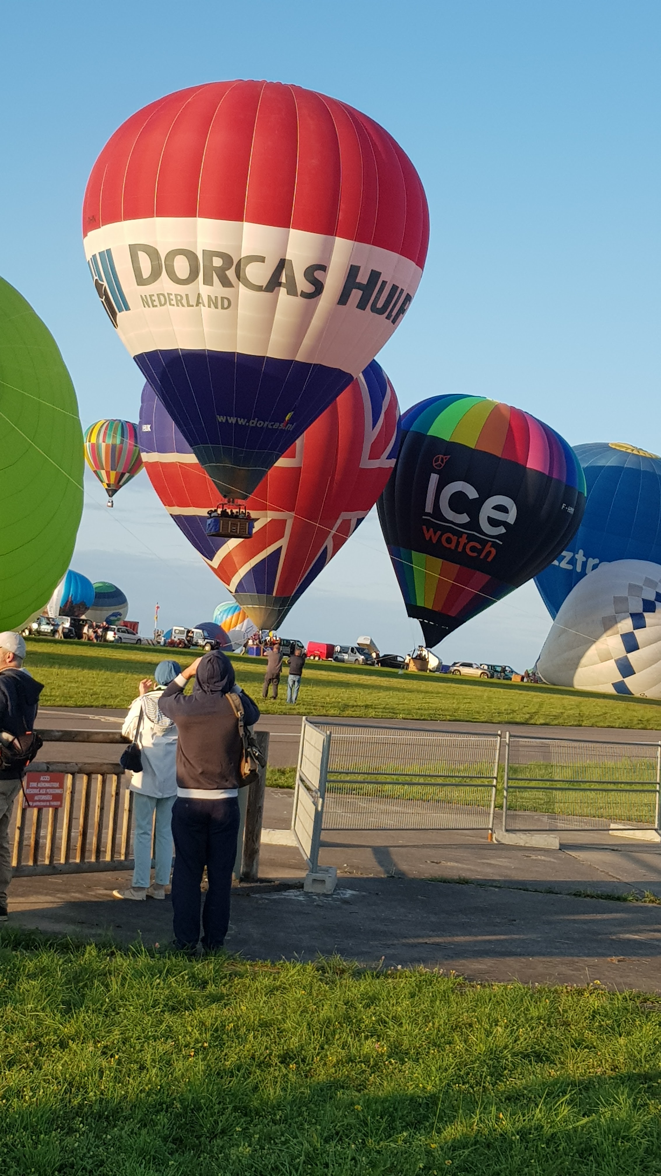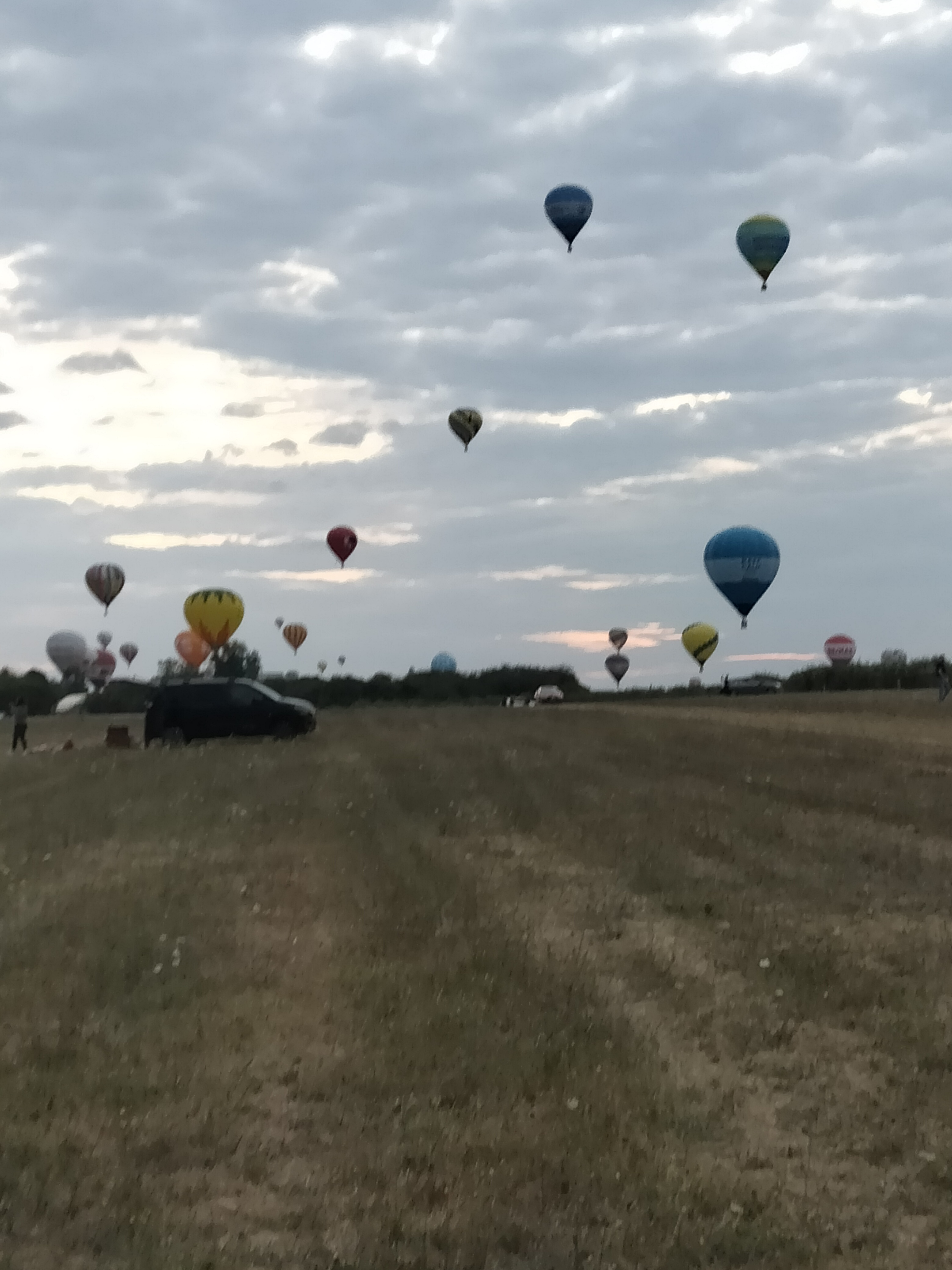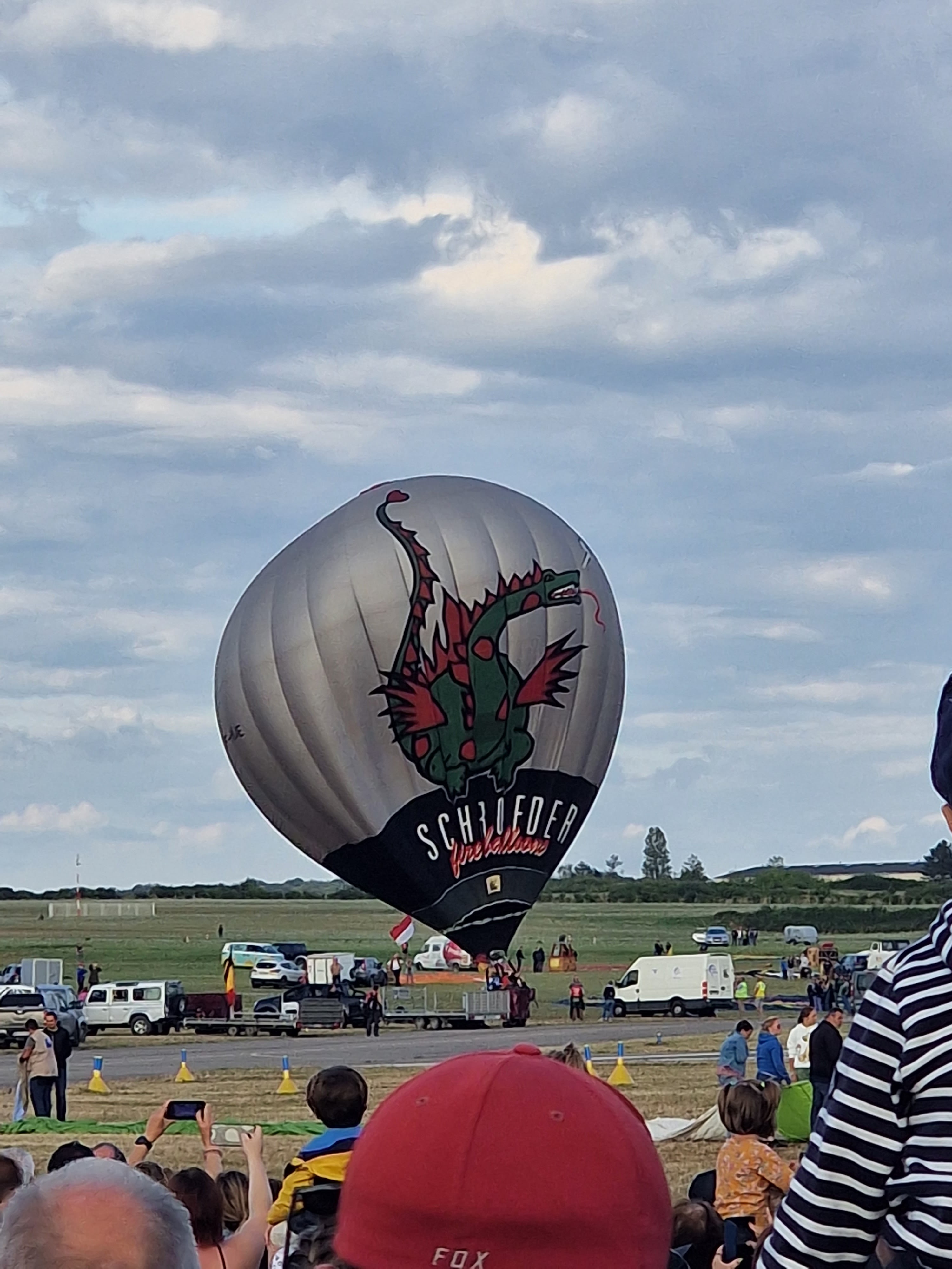 Beaucoup, beaucoup, beaucoup de monde pour aller voir un départ à 18h00. Environ 40 minutes de files de voitures pour voir l'entrée du site et se faire délester vers le parking sud par les gendarmes. Arrivé au parking sur des champs, 15 minutes de marche pour accéder à l'entrée qui lui est gratuit. Gratuit, mot qui temps à disparaître du vocabulaire Français. Le service d'ordre refuse les bouteilles de bières et autres bouteilles, mais ça passe quand même, car vérifier les sacs, les poussettes, les sacs à dos, les glacières. Pas chose facile. Reste à se placer sur les espaces encore libre devant la piste d'envol. Pas de chance, pas de départ faute à trop de vent, la foule se précipite pour sortir rapidement. Pas de chance, encore 1h00 pour sortir du parking principal. Le notre, personne, et les gendarmes sécurisés les sorties, bien. Restauration possible, wc public en nombres dispo, expo, mongolfière à doudou pour les enfants, bref, de quoi vous distraire. Merci aux organisateurs pour ce fabuleux évènement qui se tient tous les 2 ans. C'est un sacré boulot de tout prévoir, sauf la météo, là on subit.