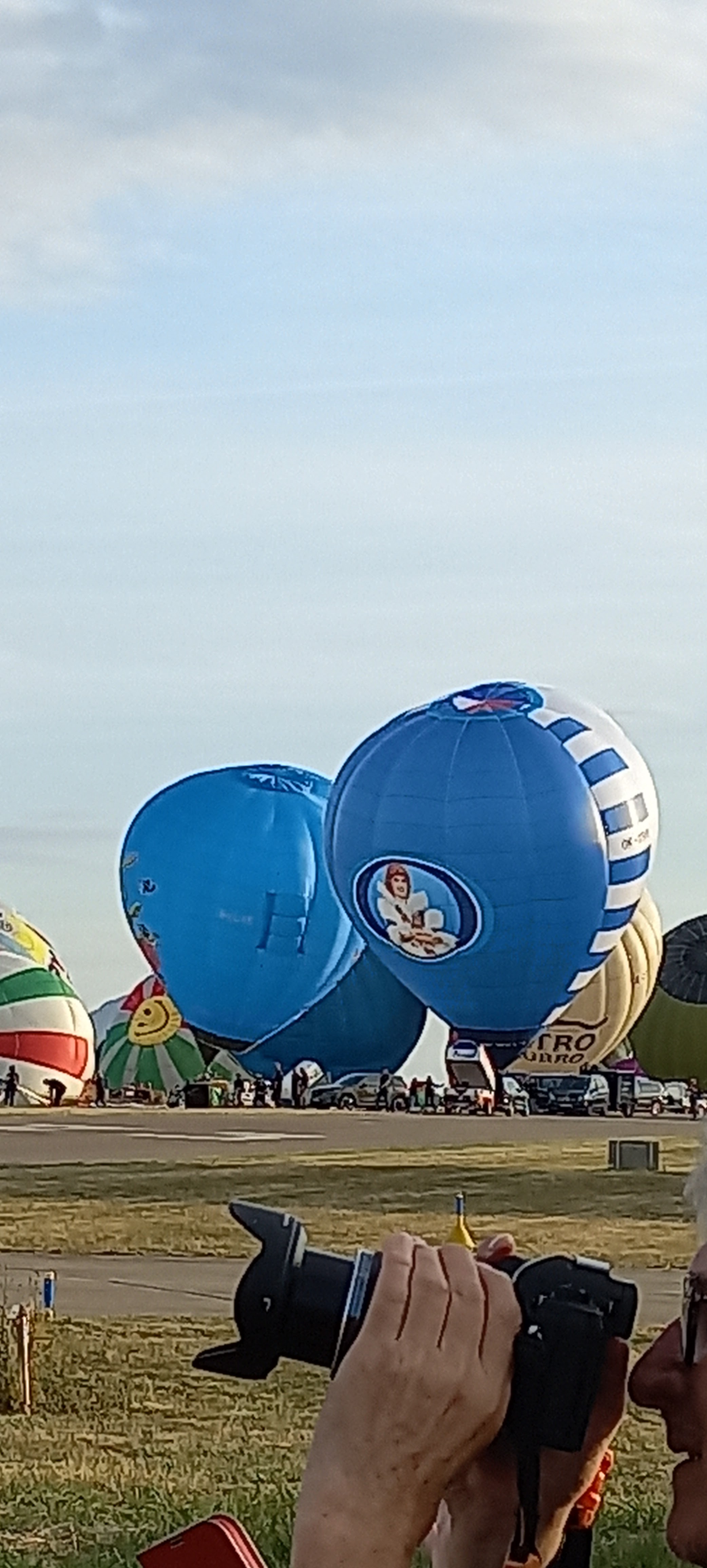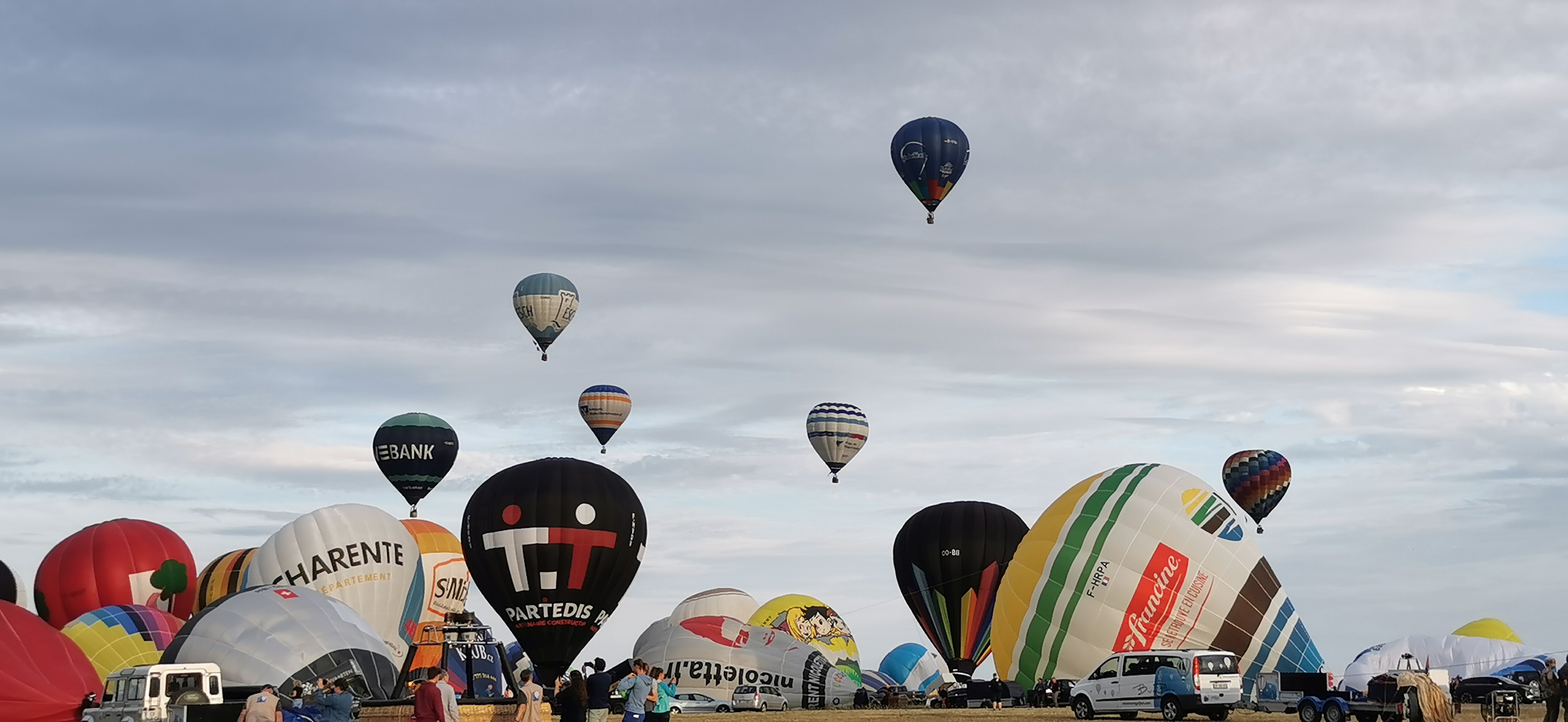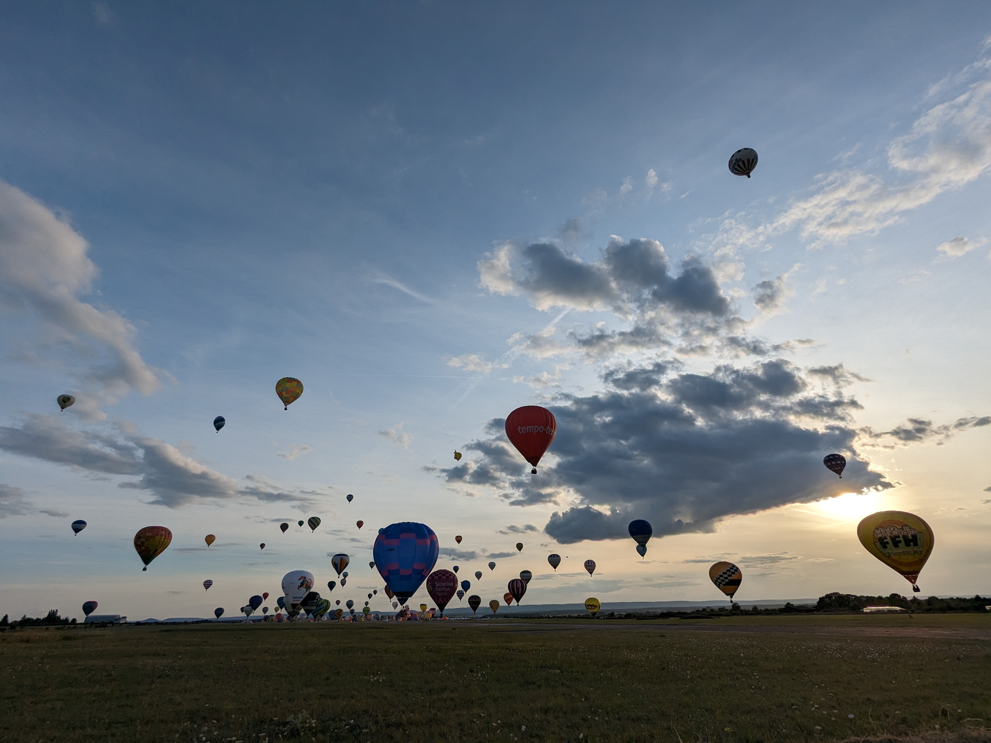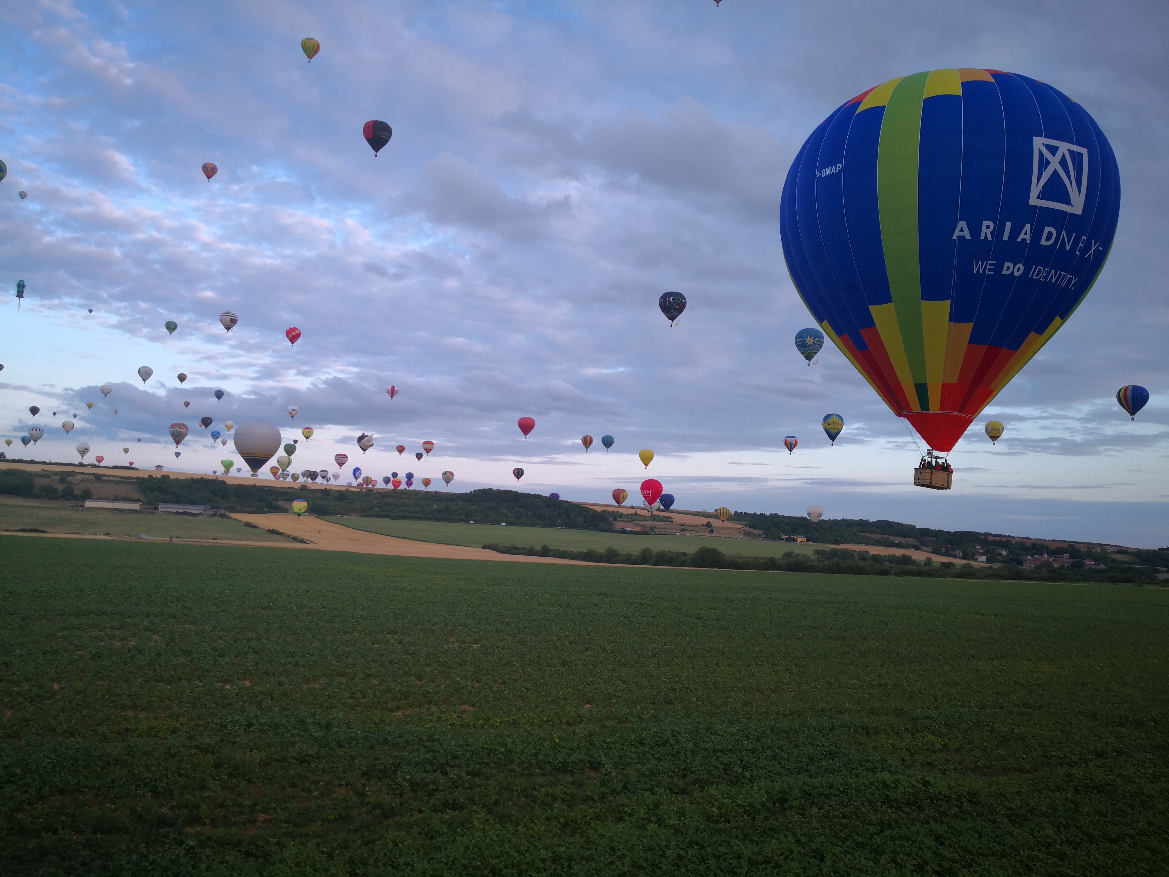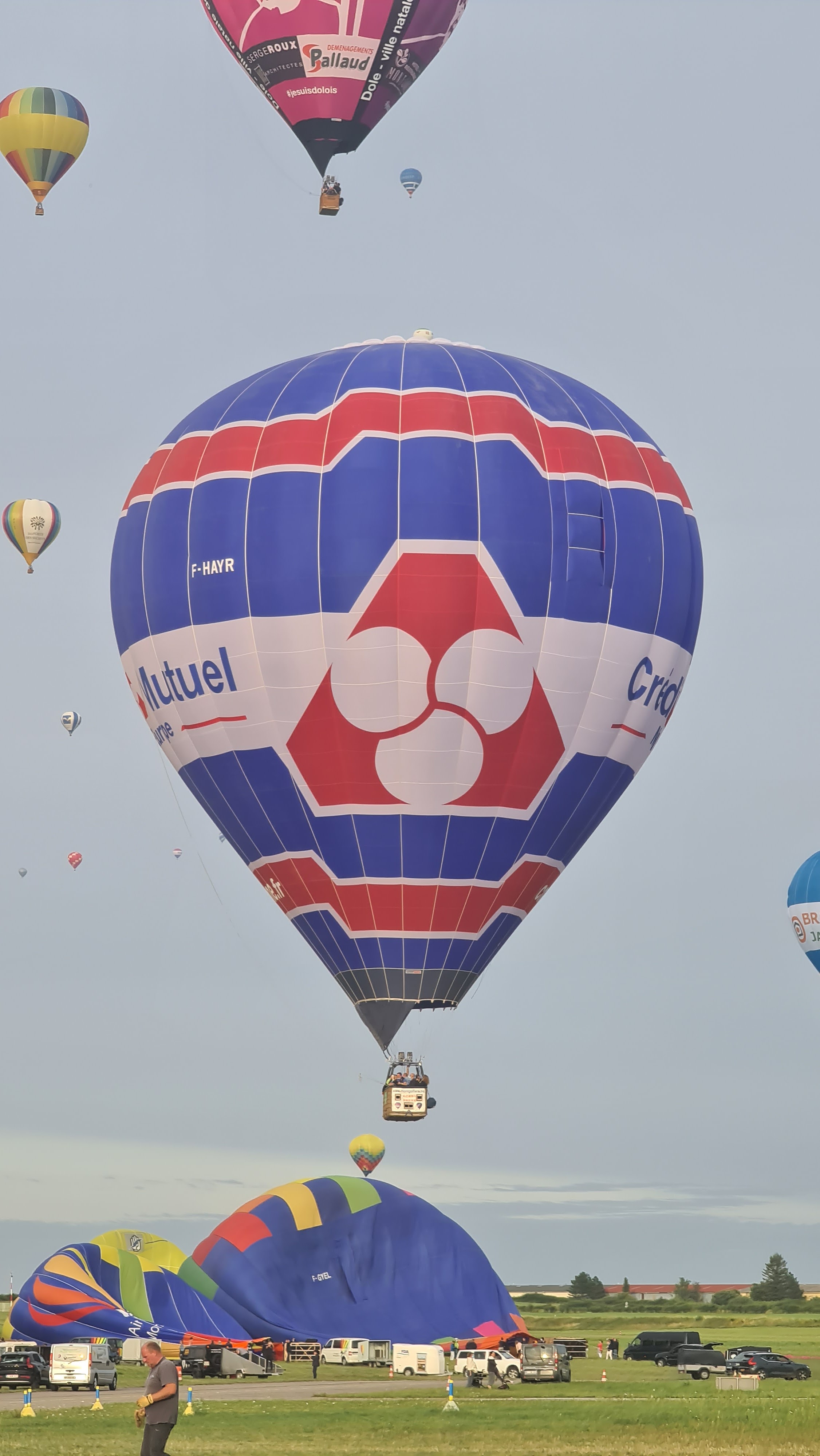 Beaucoup, beaucoup, beaucoup de monde pour aller voir un départ à 18h00. Environ 40 minutes de files de voitures pour voir l'entrée du site et se faire délester vers le parking sud par les gendarmes. Arrivé au parking sur des champs, 15 minutes de marche pour accéder à l'entrée qui lui est gratuit. Gratuit, mot qui temps à disparaître du vocabulaire Français. Le service d'ordre refuse les bouteilles de bières et autres bouteilles, mais ça passe quand même, car vérifier les sacs, les poussettes, les sacs à dos, les glacières. Pas chose facile. Reste à se placer sur les espaces encore libre devant la piste d'envol. Pas de chance, pas de départ faute à trop de vent, la foule se précipite pour sortir rapidement. Pas de chance, encore 1h00 pour sortir du parking principal. Le notre, personne, et les gendarmes sécurisés les sorties, bien. Restauration possible, wc public en nombres dispo, expo, mongolfière à doudou pour les enfants, bref, de quoi vous distraire. Merci aux organisateurs pour ce fabuleux évènement qui se tient tous les 2 ans. C'est un sacré boulot de tout prévoir, sauf la météo, là on subit.