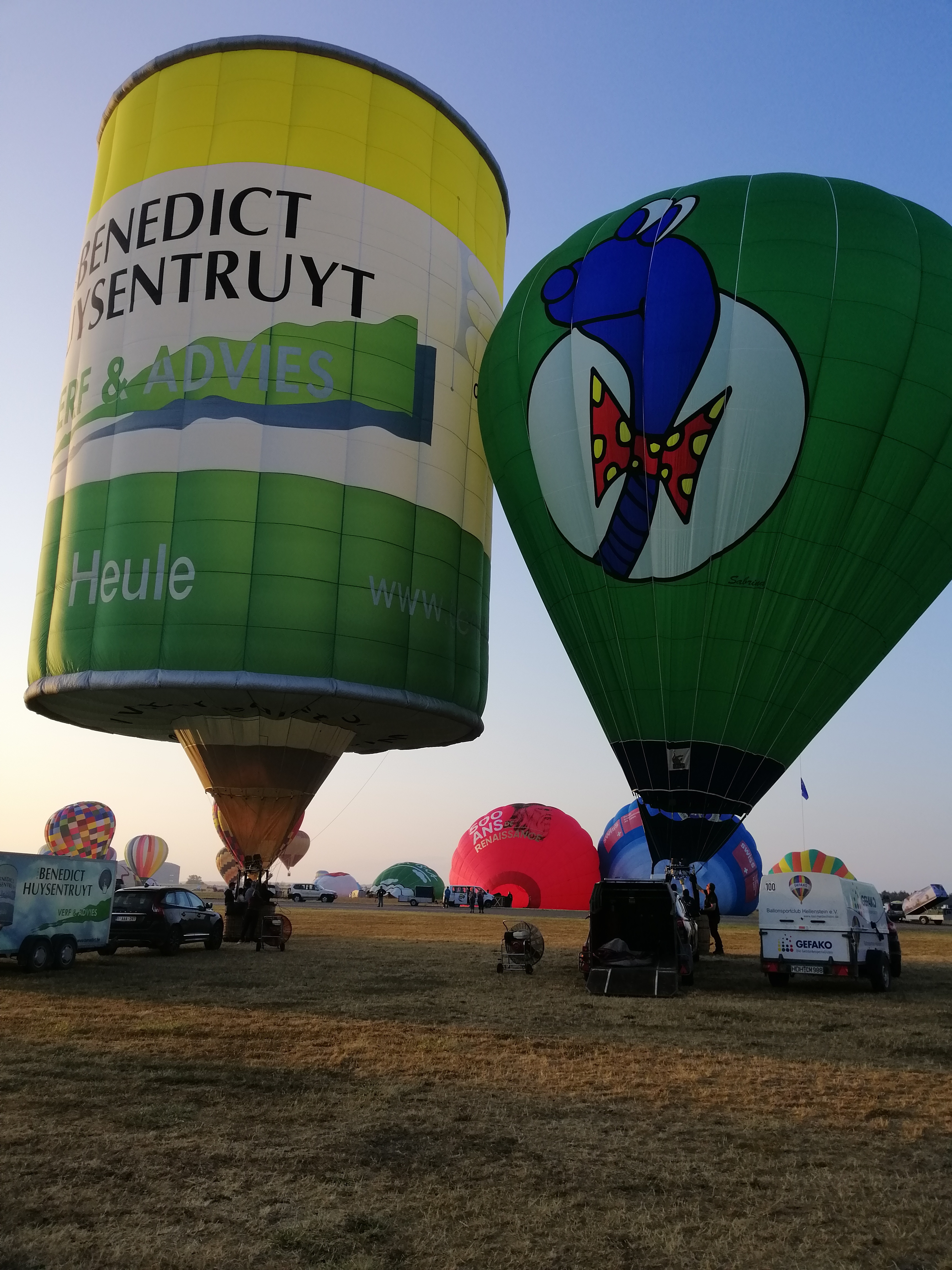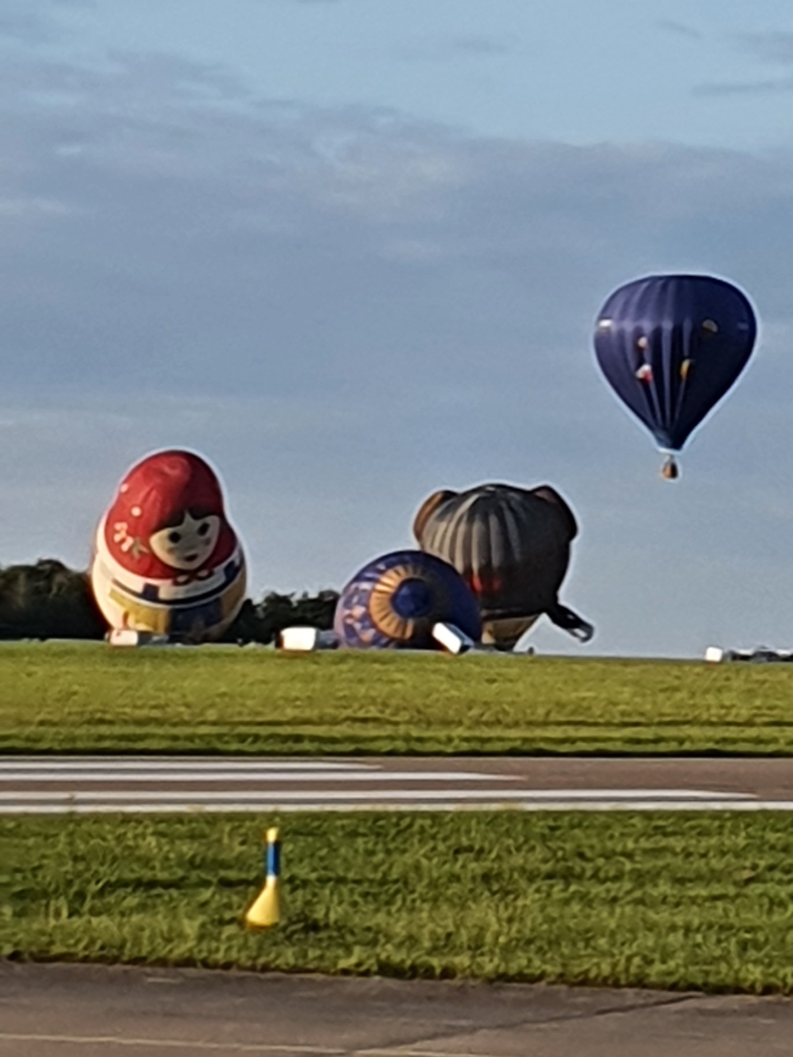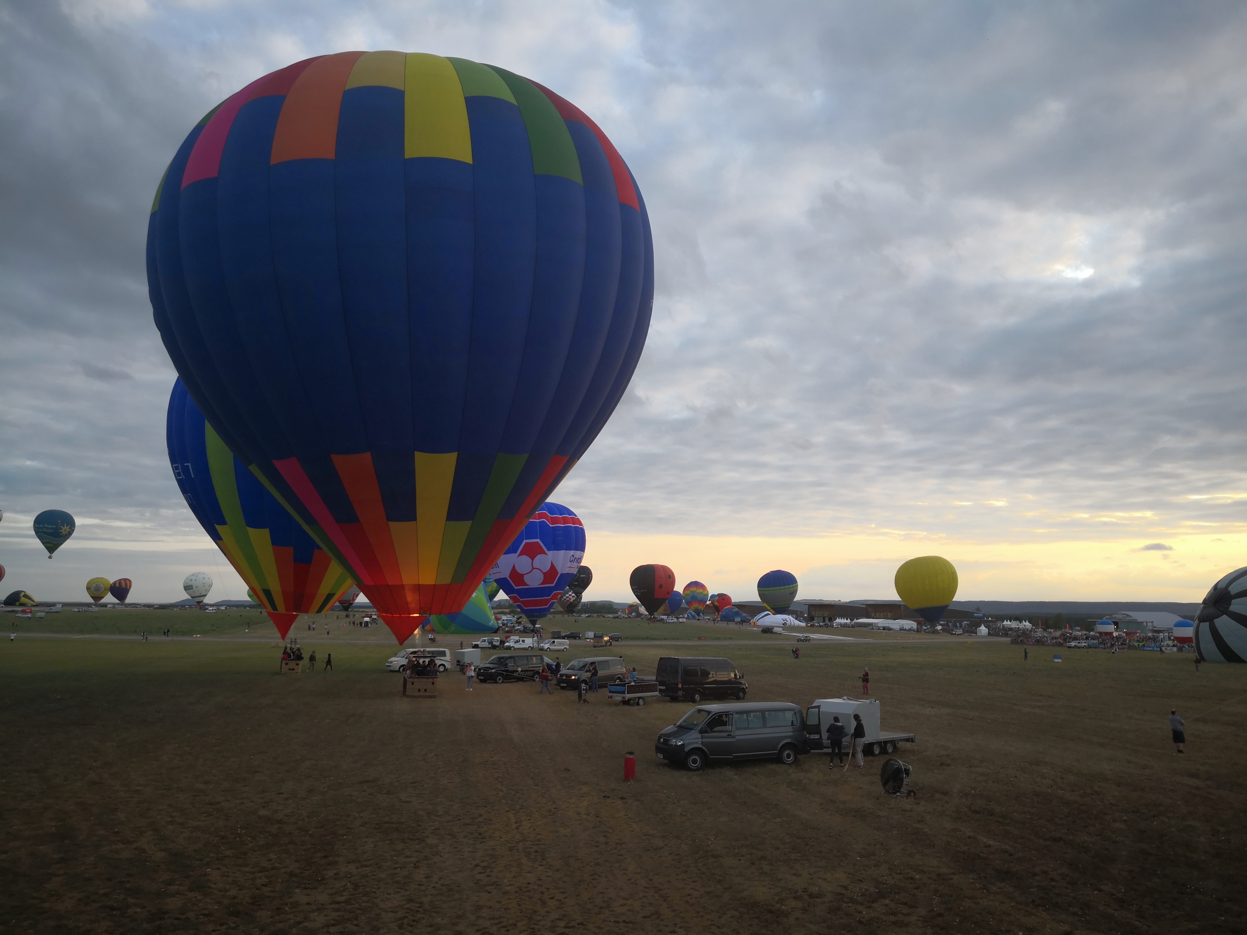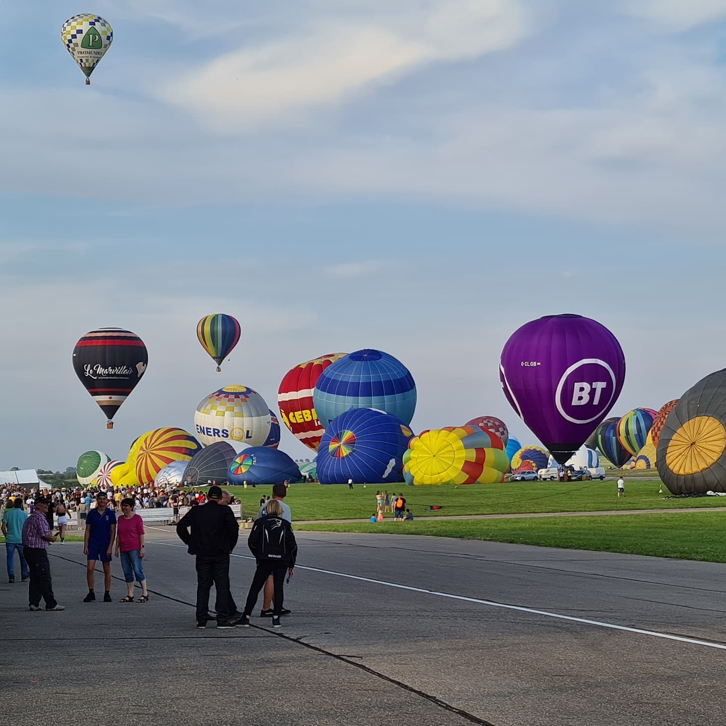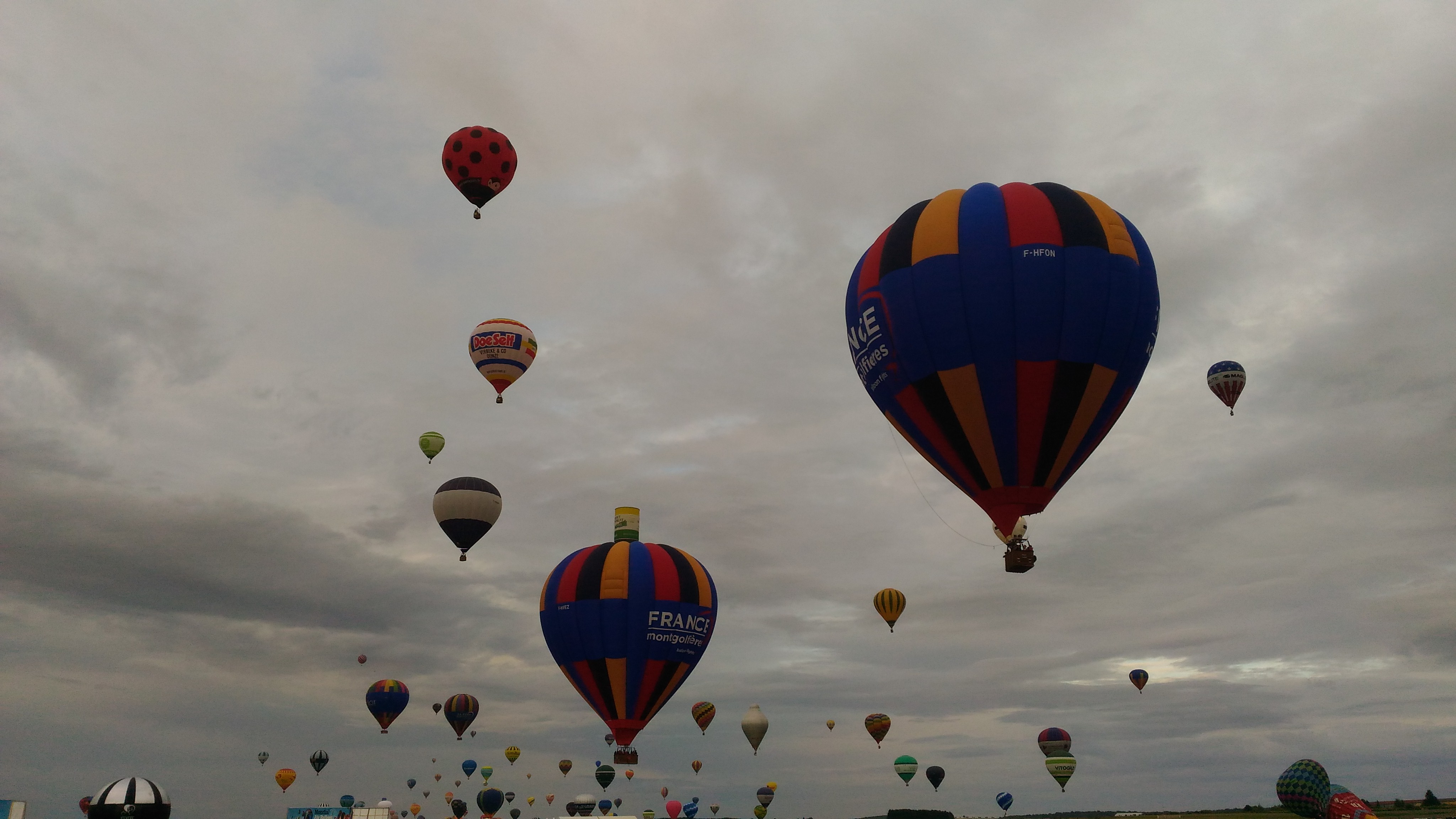 Beaucoup, beaucoup, beaucoup de monde pour aller voir un départ à 18h00. Environ 40 minutes de files de voitures pour voir l'entrée du site et se faire délester vers le parking sud par les gendarmes. Arrivé au parking sur des champs, 15 minutes de marche pour accéder à l'entrée qui lui est gratuit. Gratuit, mot qui temps à disparaître du vocabulaire Français. Le service d'ordre refuse les bouteilles de bières et autres bouteilles, mais ça passe quand même, car vérifier les sacs, les poussettes, les sacs à dos, les glacières. Pas chose facile. Reste à se placer sur les espaces encore libre devant la piste d'envol. Pas de chance, pas de départ faute à trop de vent, la foule se précipite pour sortir rapidement. Pas de chance, encore 1h00 pour sortir du parking principal. Le notre, personne, et les gendarmes sécurisés les sorties, bien. Restauration possible, wc public en nombres dispo, expo, mongolfière à doudou pour les enfants, bref, de quoi vous distraire. Merci aux organisateurs pour ce fabuleux évènement qui se tient tous les 2 ans. C'est un sacré boulot de tout prévoir, sauf la météo, là on subit.