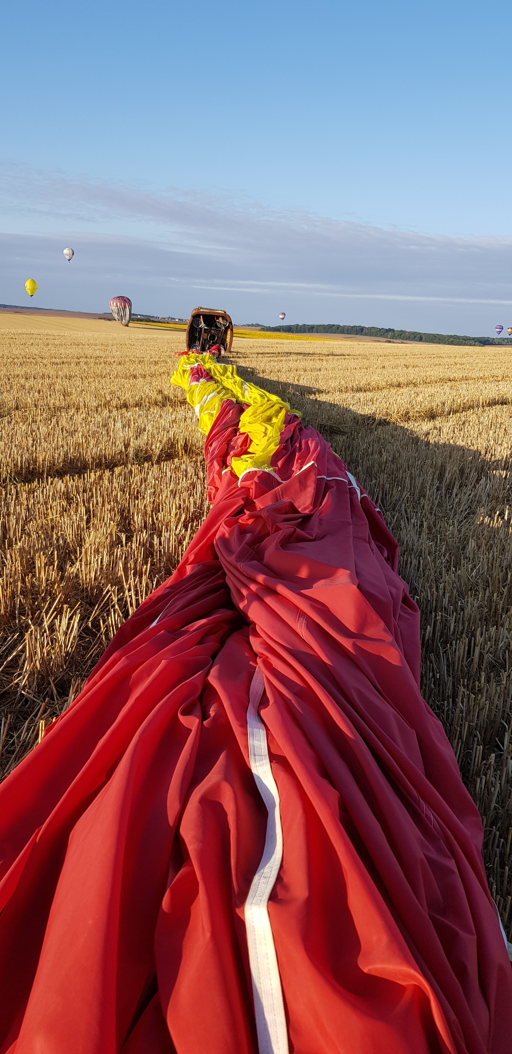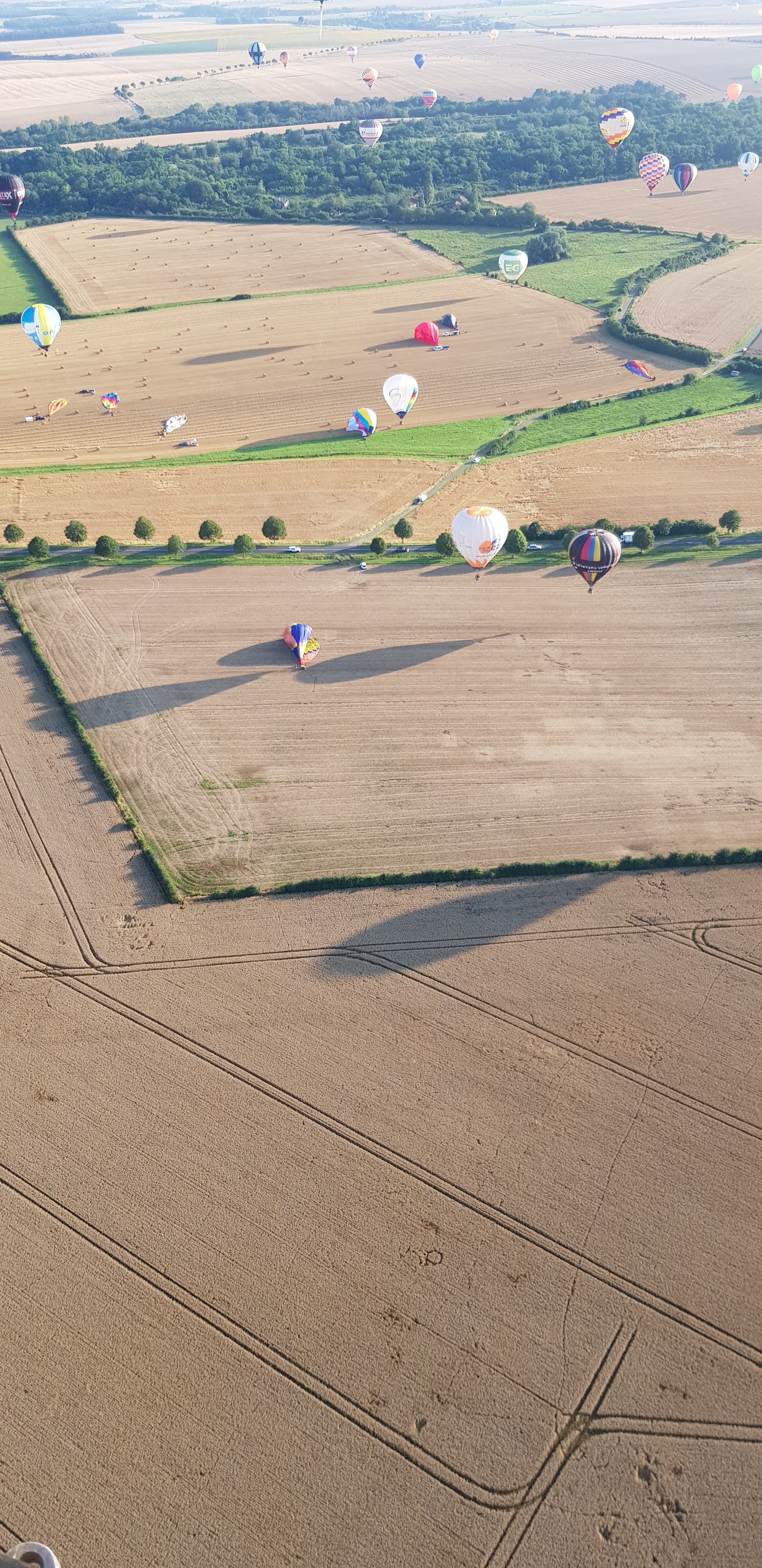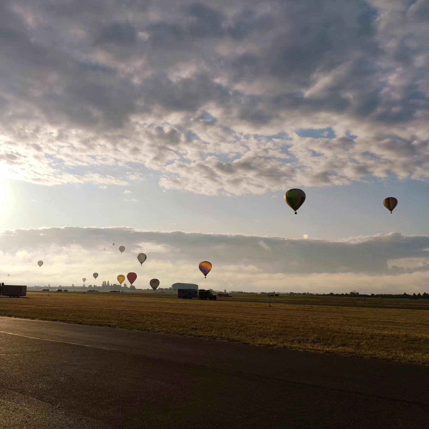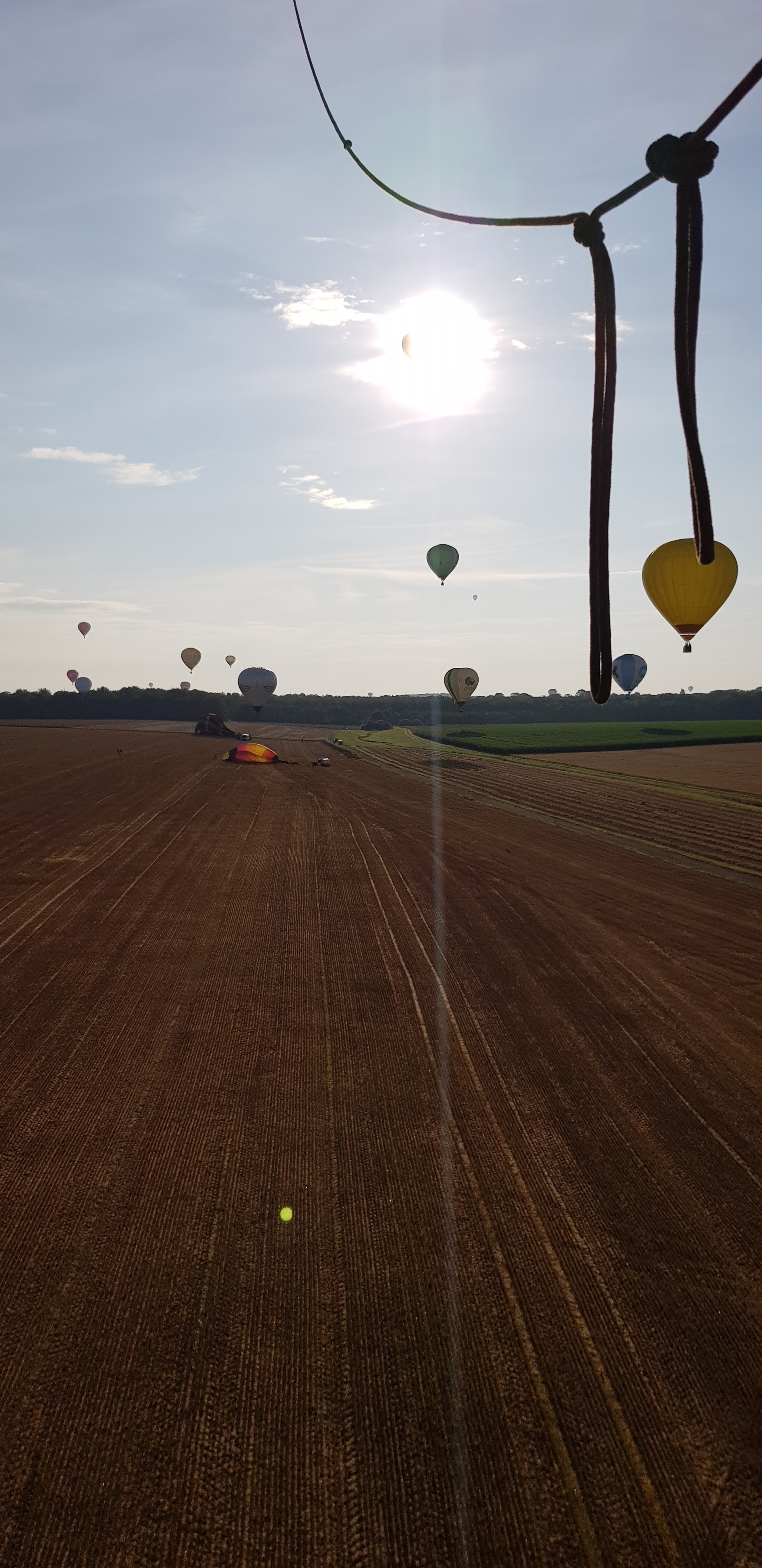 Pour le dernier jour, envol du soir. Je m attendais à voir plus de montgolfières. C est très beau. Parking dans les champs. Visite des hangars possibles pour des expositions.