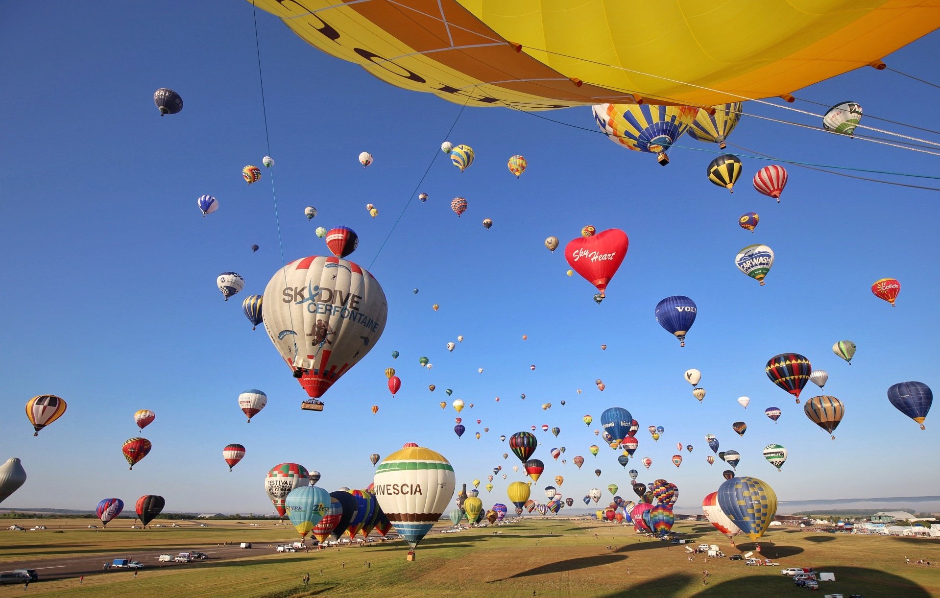 Magnifique envol de plusieurs centaines de Mongolfières. Parking gratuits voitures et campings cars, accessible à tout le monde, entrée gratuite.