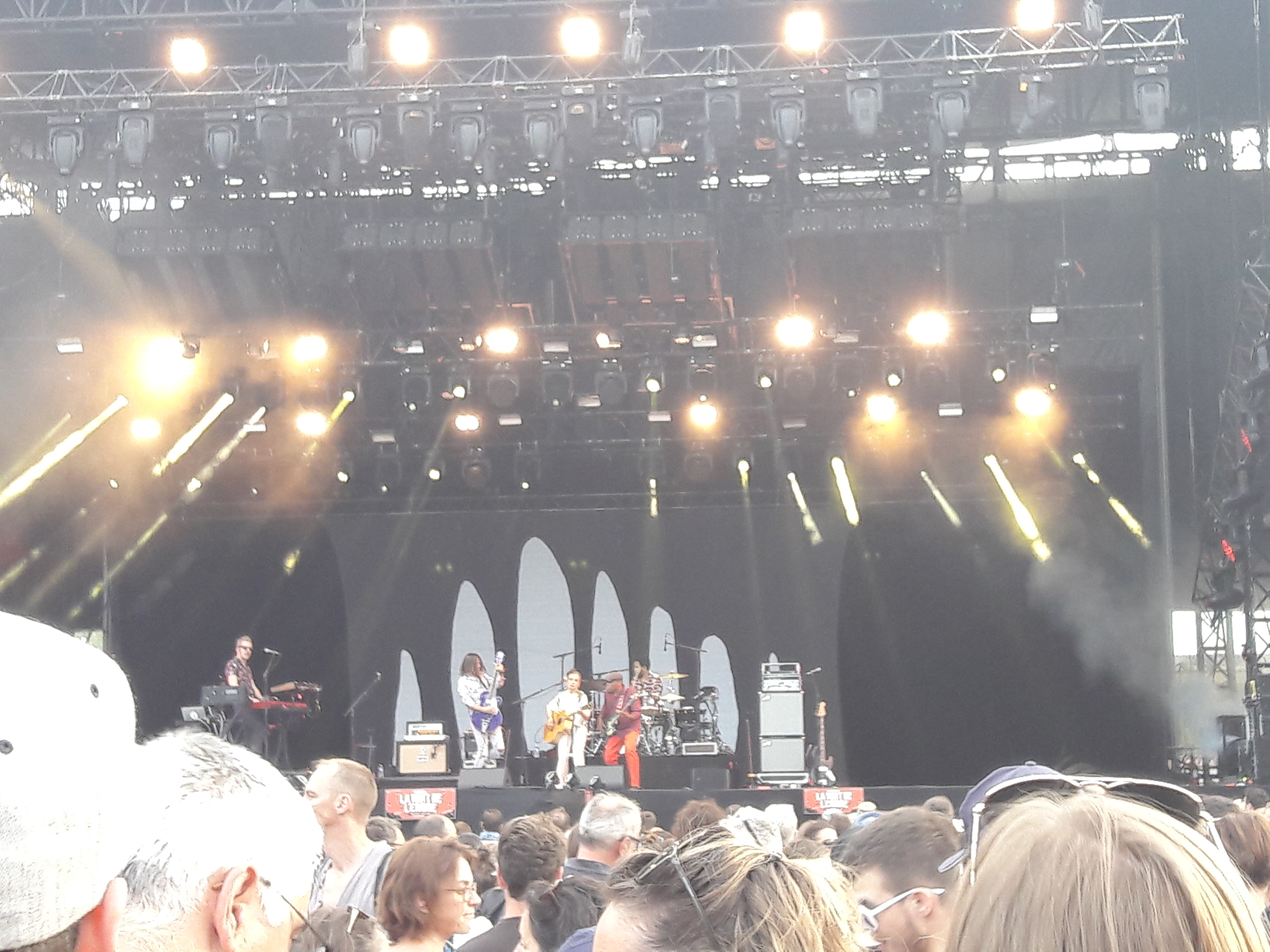 Journée du samedi 02 juillet : grand soleil, foule nombreuse, très bonne ambiance. Bonne organisation. J'y allais avant tout pour Royal Blood (qui ont déchaîné le public, on se serait cru aux prolongations du HellFest), et j'ai découvert Inhaler (le fils de Bono de U2, excusez du peu, ce groupe tient la route), mais aussi Angèle qui a ravie son public (not my cup of tea mais beau spectacle). Restauration assez rapide et point d'eau bienvenu, festival très familial qui coïncide avec les résultats de fin d'année scolaire, c'est agréable de voir la jeunesse les célébrer en musique ! Seul bémol, la poussière soulevée par les piétinements. Seulement quelques tapis montrent le chemin si on veut éviter la terre battue. J'avais trouvé le principe du City Truck Festival (dans le 49) ingénieux : un revêtement type gazon synthétique sur des carrés plastiques qui s'assemblaient comme les pièces d'un puzzle : pas de poussière ! Bravo à l'orga et aux bénévoles très nombreux et omniprésents (big up la brigade verte) !
