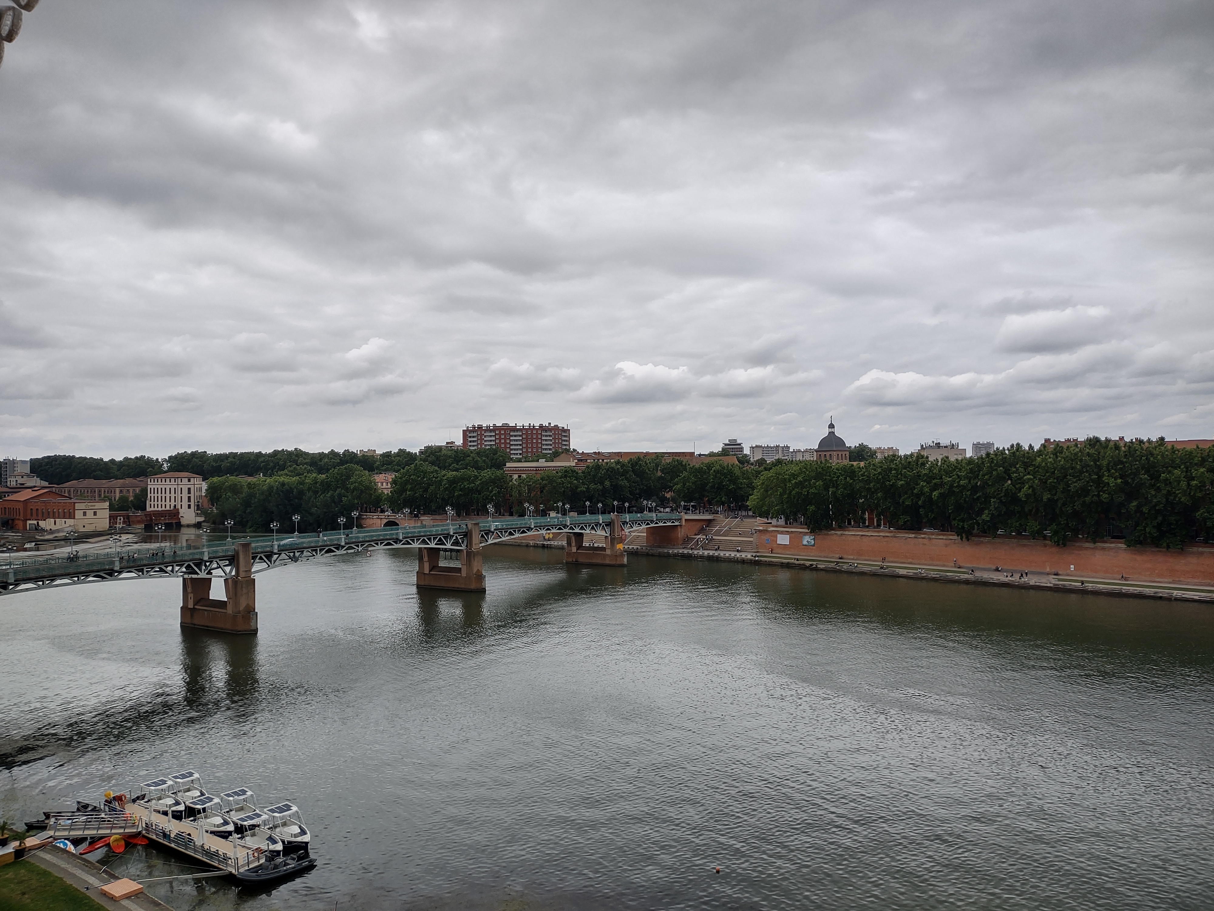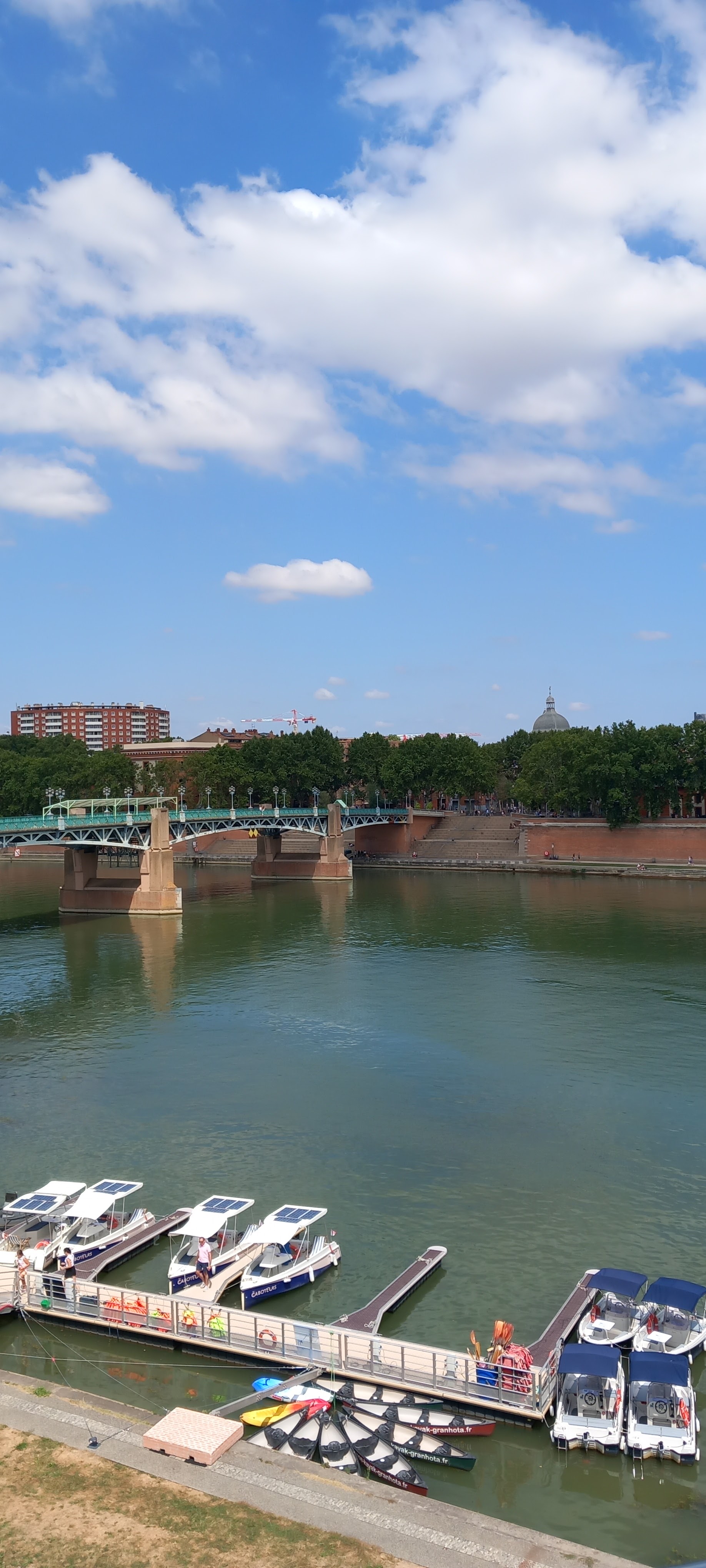 Une des plus belles vues de Toulouse, et un grand parc à jeux pour les enfants derrière la digue.
