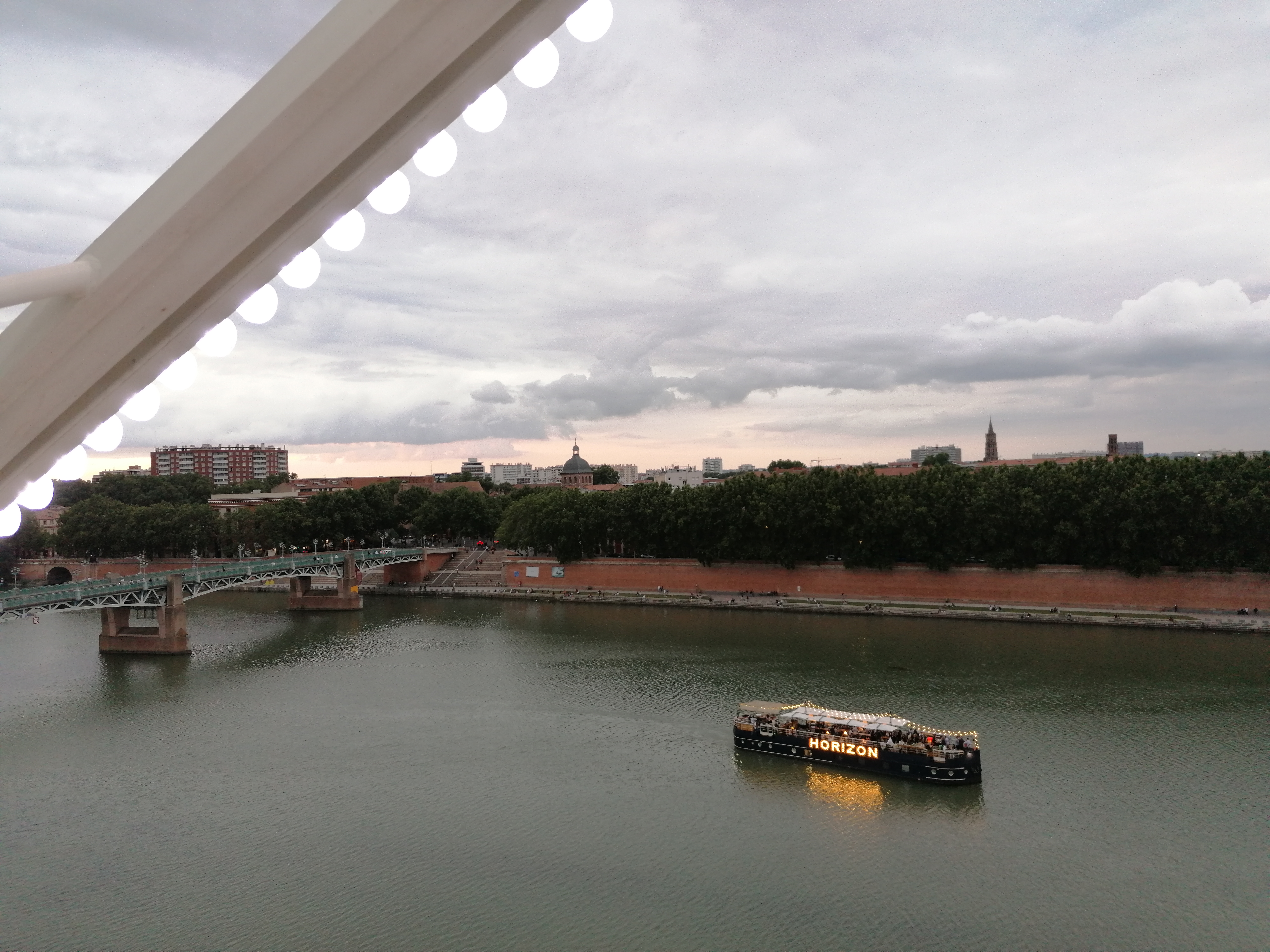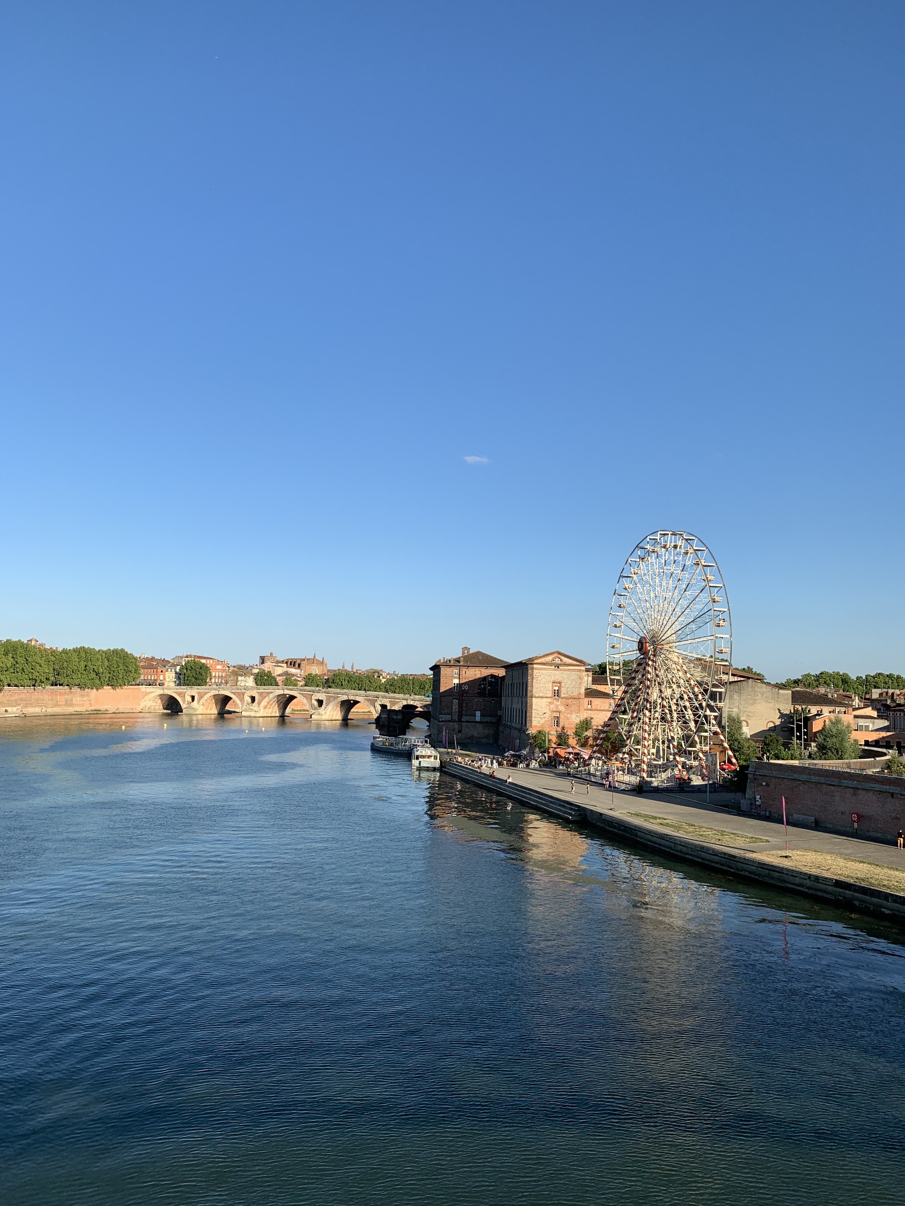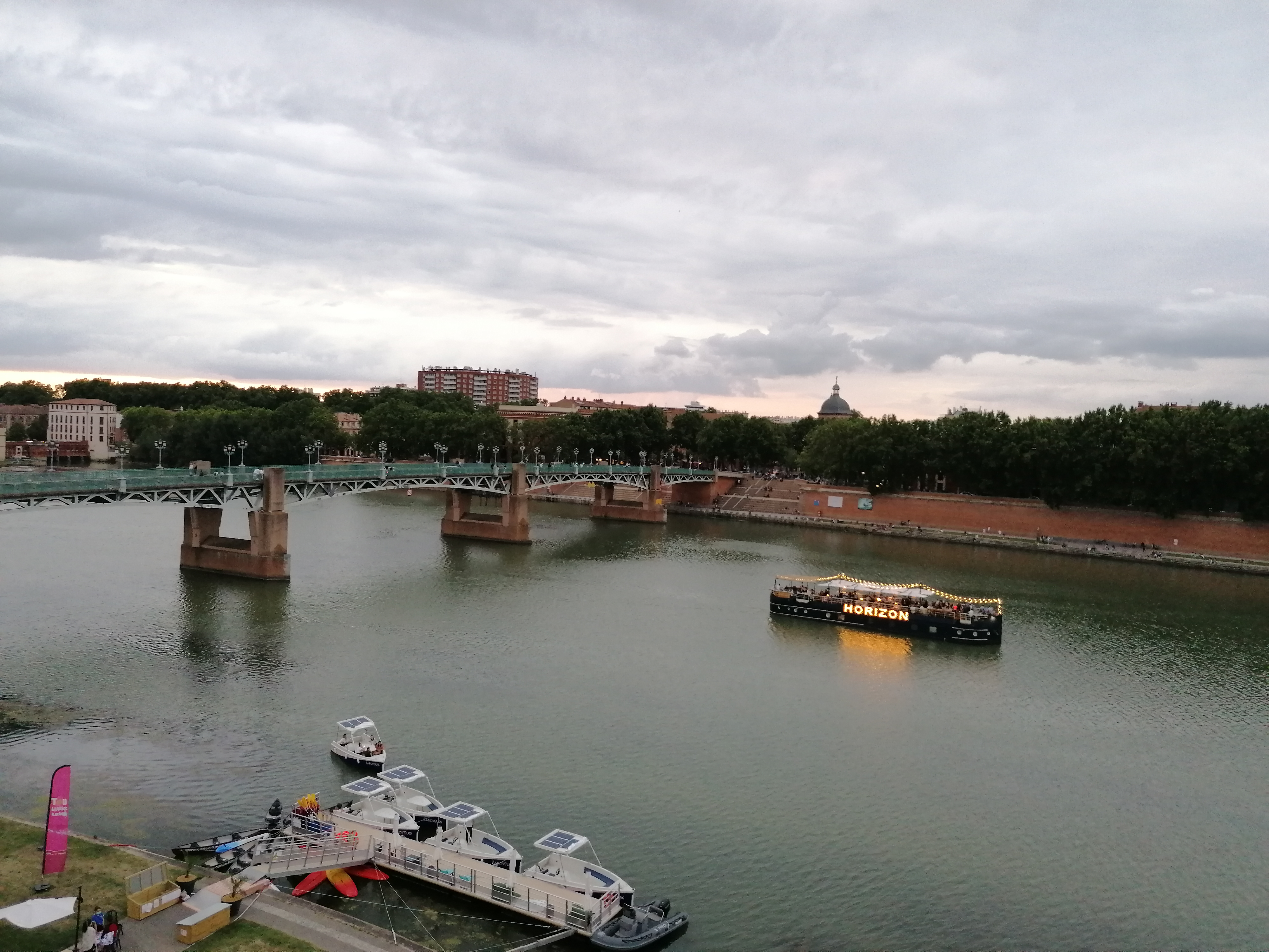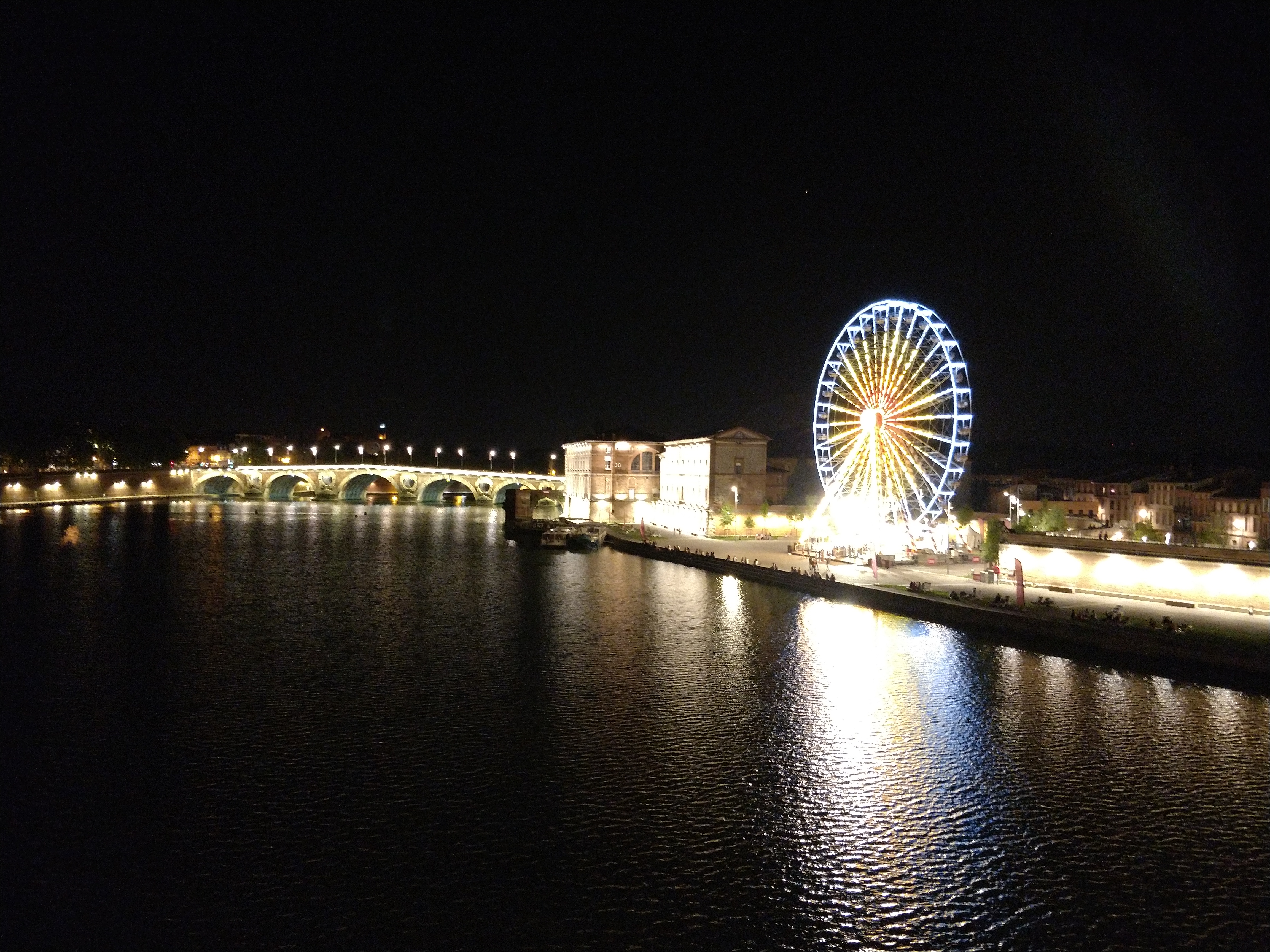 Super endroit au bord de Garonne avec sa grande roue, pour les enfants et les adultes, de la grande roue vous voyez tout Toulouse, café terrasse bien aménagé+ l'embarquement de la péniche l'horizon avec ambiance a bord, faut réserver pour y aller. Côté prix il s'embête pas , exemple: deux morito 20 euros. Cette endroit est à découvrir, la vue des quais est magnifique, en face le quai de la Daurade, sur la gauche le pont neuf et sur la droite le pont St Pierre. Le seul bémol c'est que la commune de Toulouse n'a pas assé aménagé les quais, ça manque de petits café terrasses de petits snack et même de petits kiosques .