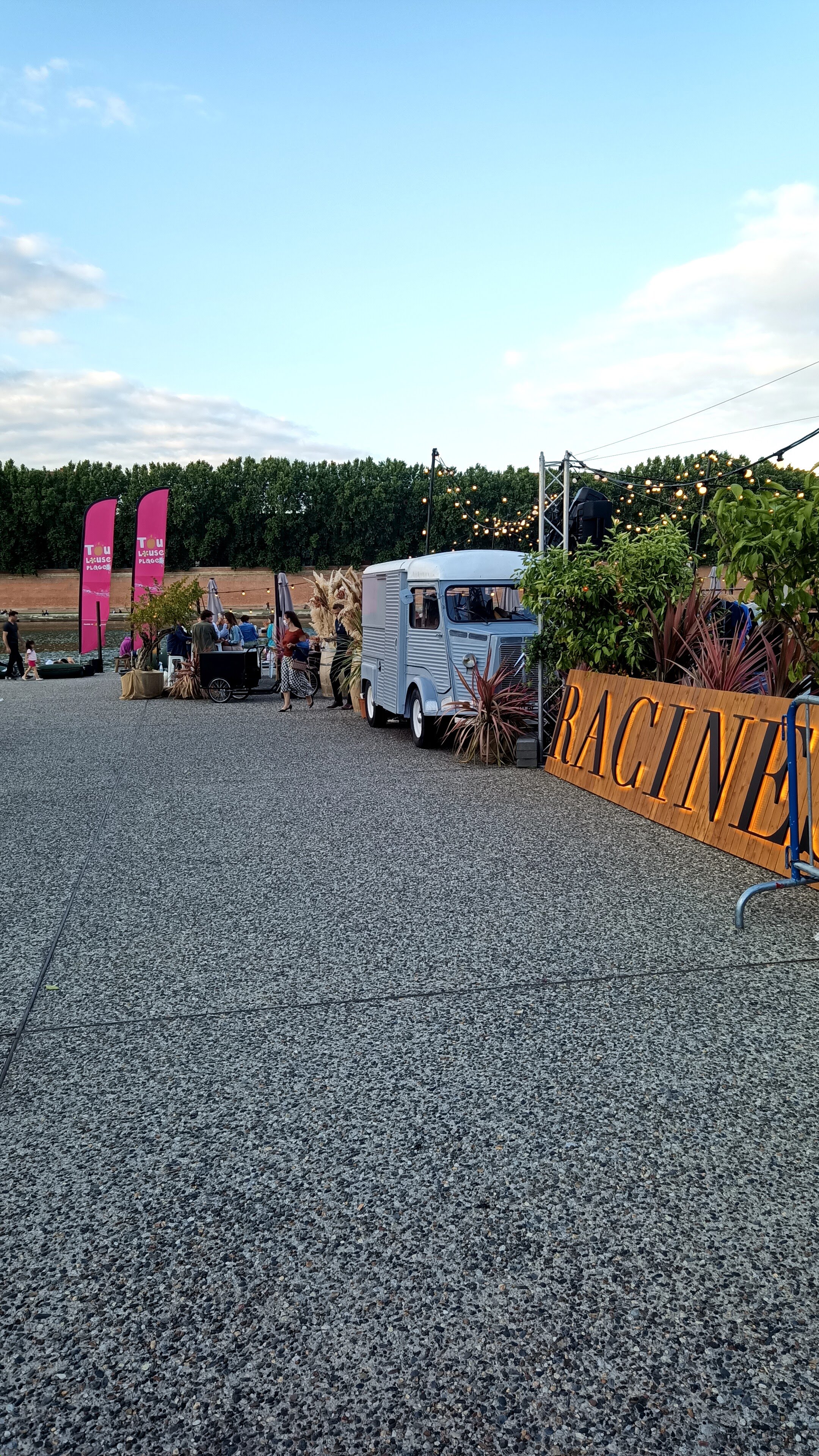 Belle ambiance avec la guinguette racine x a pérenniser et la Garonne à explorer dans le même esprit que le canal St Martin à Paris.