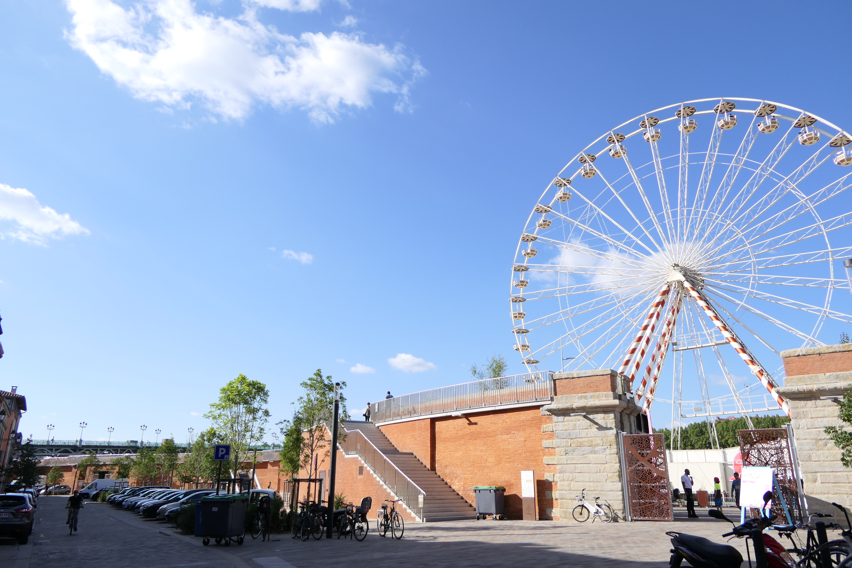 Vu comme ça, c' est quand même beaucoup mieux que l' infâme parking qui a longtemps été le maître des lieux ! La transformation des bords de GARONNE, à commencer par la passerelle entre le jardin RAYMOND VI & le port VIGUERIE, a été bien conçue & cet endroit en a profité à plein, surtout l' été naturellement. De la grande roue, la vue est surprenante sur le fleuve & la cité.